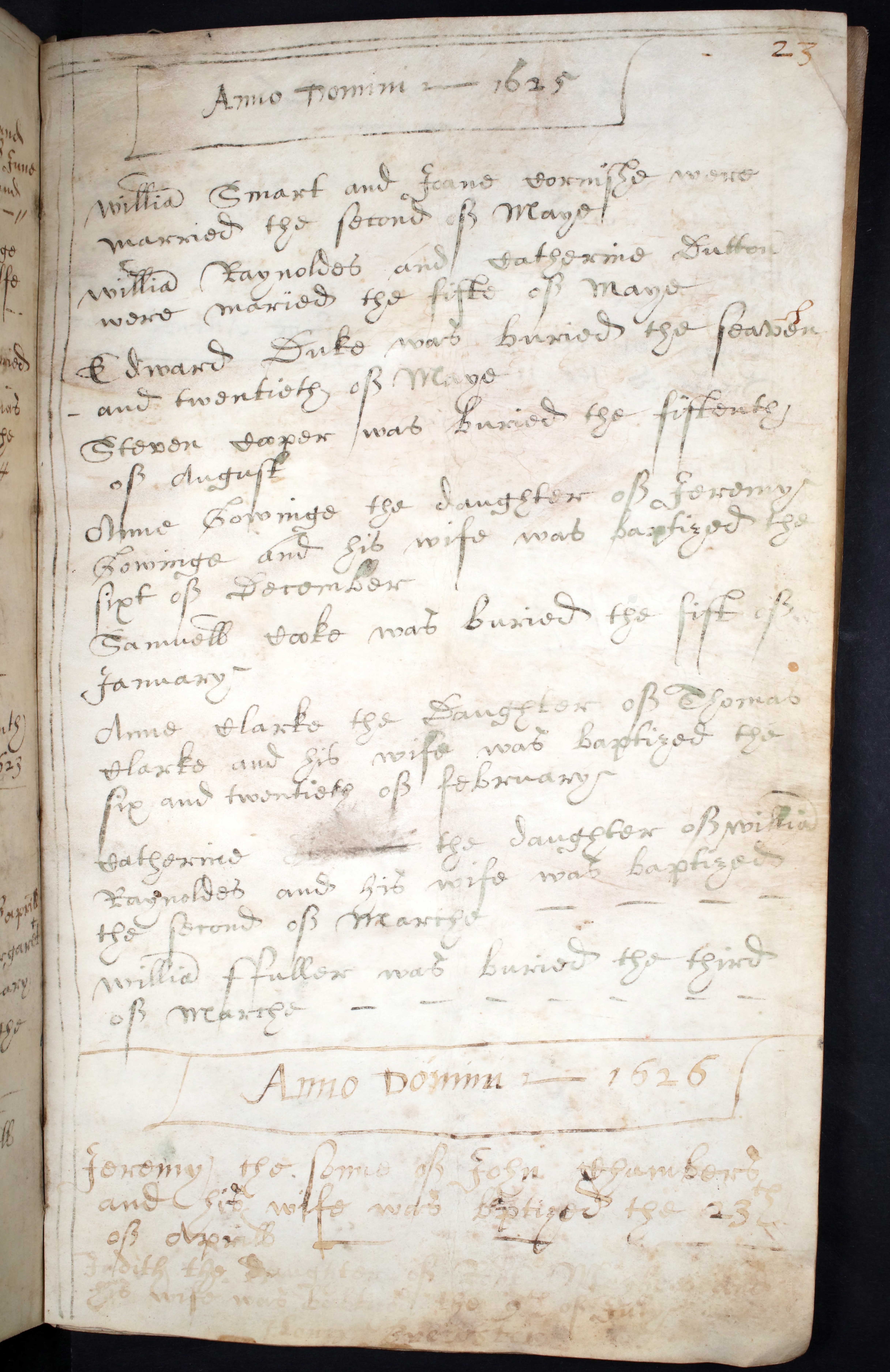 If John and Alles were married around 1622, the year before the baptism of their first recorded child, Joseph, then both were likely born close to 1600. On that basis they would have been about fifty years old at death. This was not unusually young by the standards of the period. While infant and childhood mortality were very high, adults who survived into their twenties often lived into their forties or fifties.