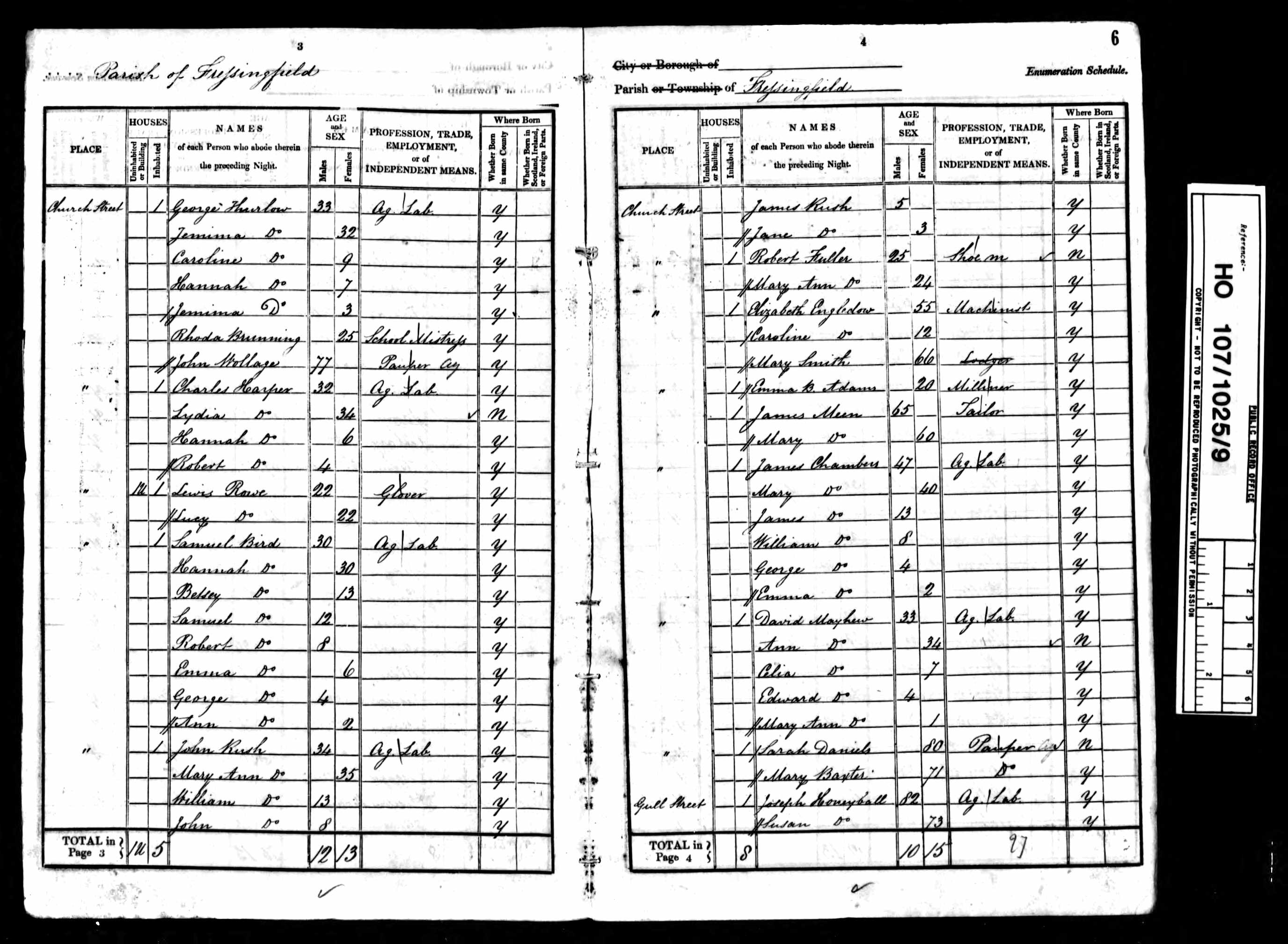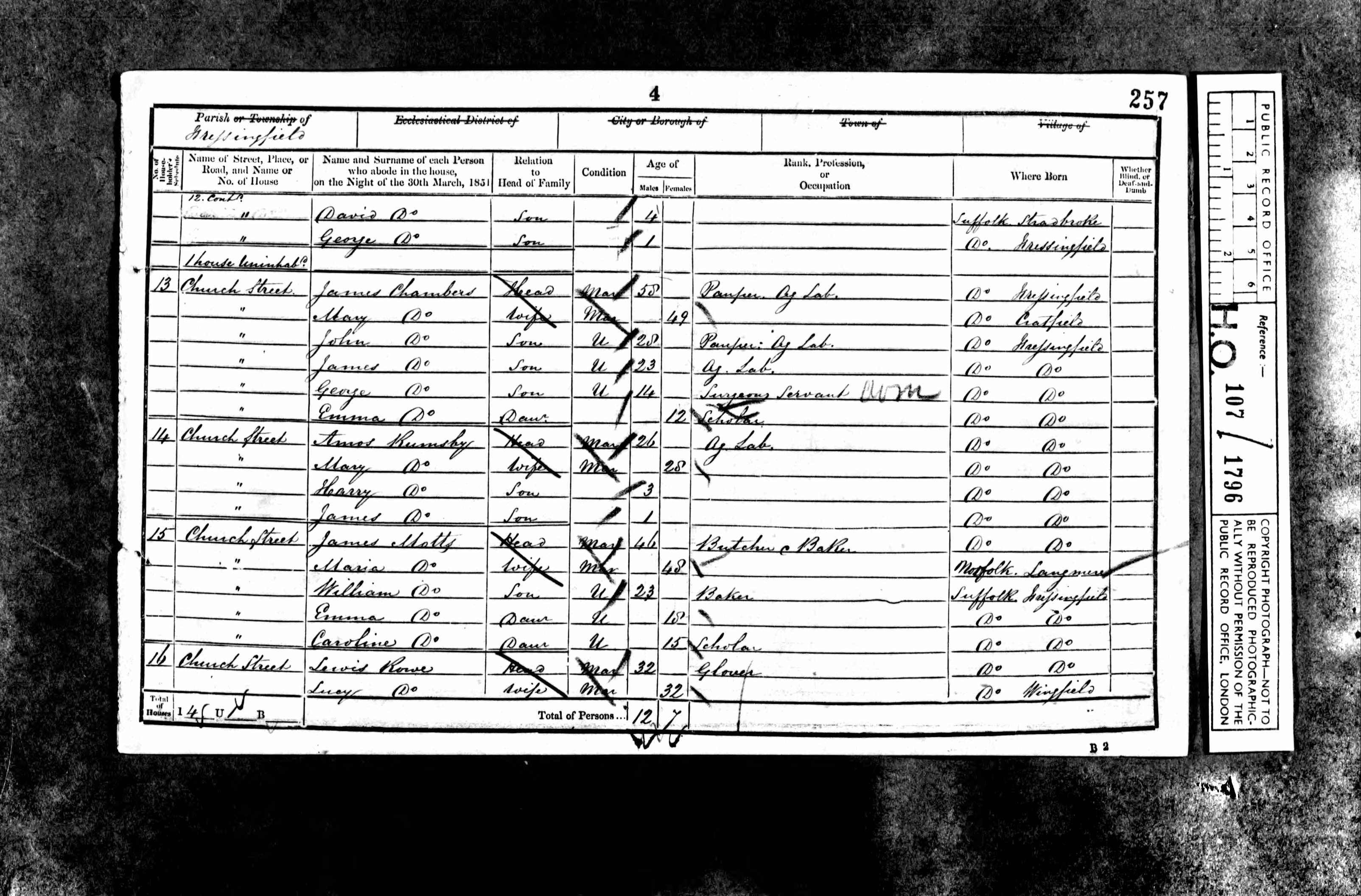 By the time of the 1851 census, James was fifty-eight and still living on Church Street in Fressingfield with Mary Ann and four of their childrenf1. The household gives us a snapshot of the family at a single moment, and it is a revealing one. James himself was recorded as a pauper, not merely a labourer on low wages, but someone in receipt of parish relief, dependent on the system for survival. His eldest son John, by then twenty-nine, was working as an agricultural labourer but also shown as a pauper. The younger son, James, somehow avoided this label. These were the occupations that the family had known for at least four generations, and probably longer.