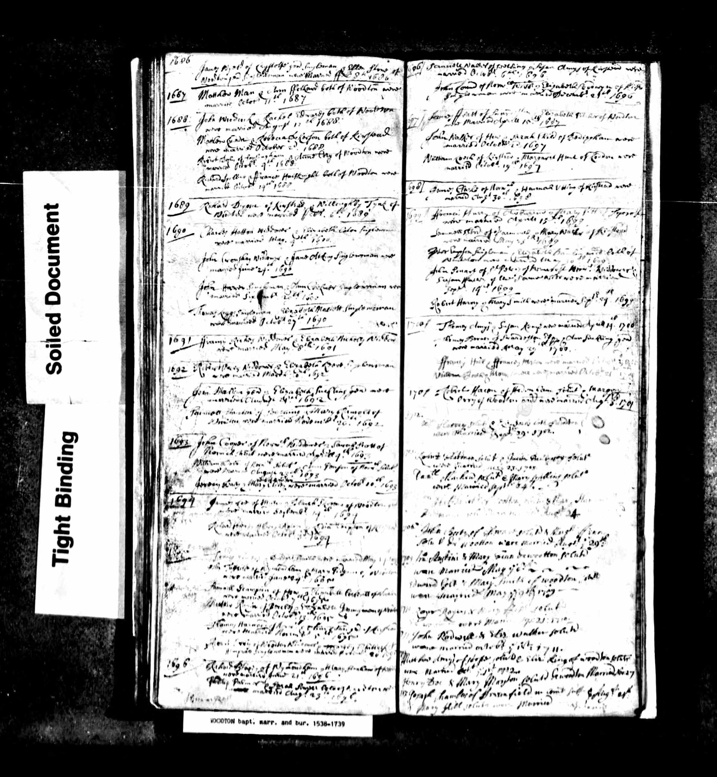 I don’t know what brought Joseph to Woodton, but the marriage entry leaves no doubt as to his identity, as it explicitly describes him as being “of Fressingfield in the county of Suffolk”. Joseph would have been around sixty four years old. There is no other record of Mary Hill in the Woodton registers, so her age at marriage is unknown. However, she went on to bear four children between 1714 and 1720, which suggests that she was unlikely to have been more than about forty years old when they married. It’s more likely that she was considerably younger, and that the limited number of children reflects Joseph’s advanced age or his death soon after the birth of the youngest child.