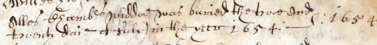 John died in 1653, the same year Cromwell was declared Lord Protector. He was buried on the 29th Septemberv5, still in Ubbeston, at St. Peter’s Church. Alles, survived him only by a few months and was buried at the same church on the 22nd July 1654y1.