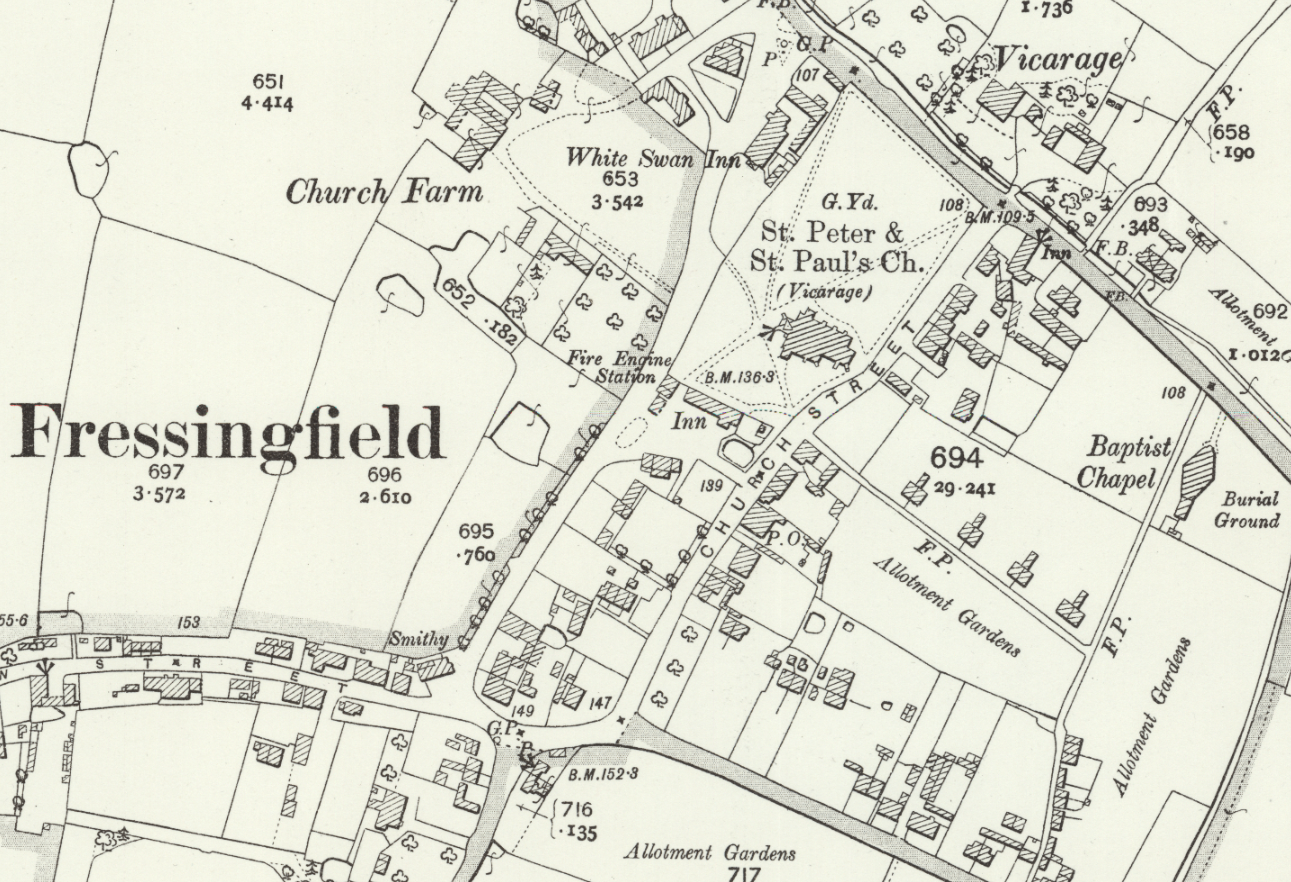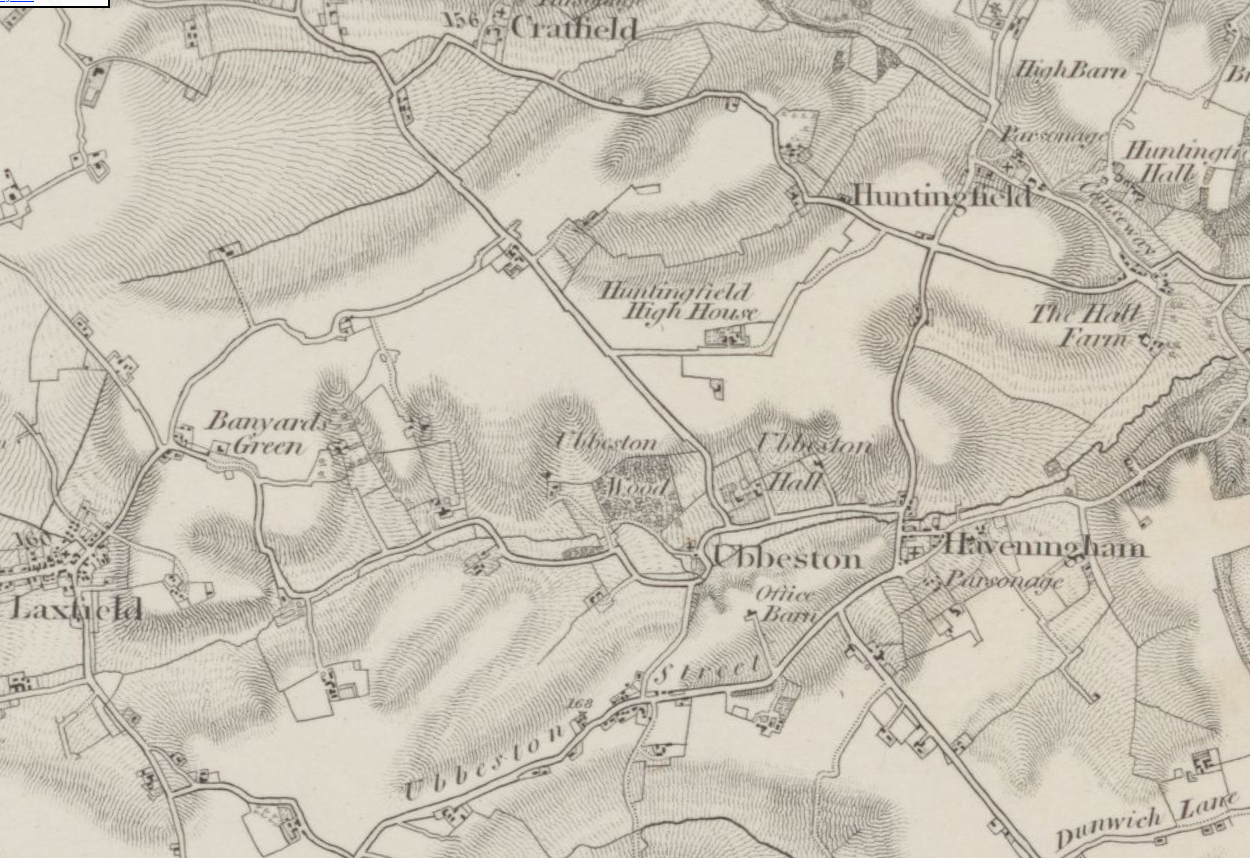 Fressingfield was a larger and more economically active parish than Ubbeston. Lying just south of the Waveney valley which forms the boundary between Suffolk and Norfolk, it is almost equidistant from Ipswich and Norwich.