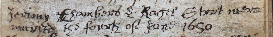 Jeremy, sometimes recorded as Jeremiah, was John Chambers’ second son. He married Rachel Strut on the 4th June 1650h2 at St. Mary’s Church in the parish of Cratfield, just a couple of miles north of Ubbeston.