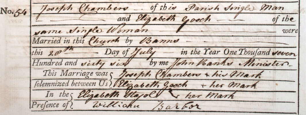 Joseph Chambers (I) (1649–?) and Mary Hill