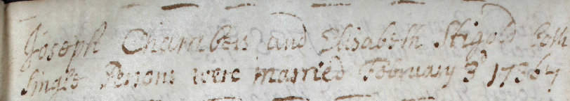 Joseph (III) was the only son of Joseph Chambers (II) and Elizabeth Stigold. He was baptised on the 25th December 1738a36 in Fressingfield. A Christmas Day baptism was not unusual; the Church of England expected children to be brought to the font promptly after birth, and the day of the week or the feast being observed made little difference.