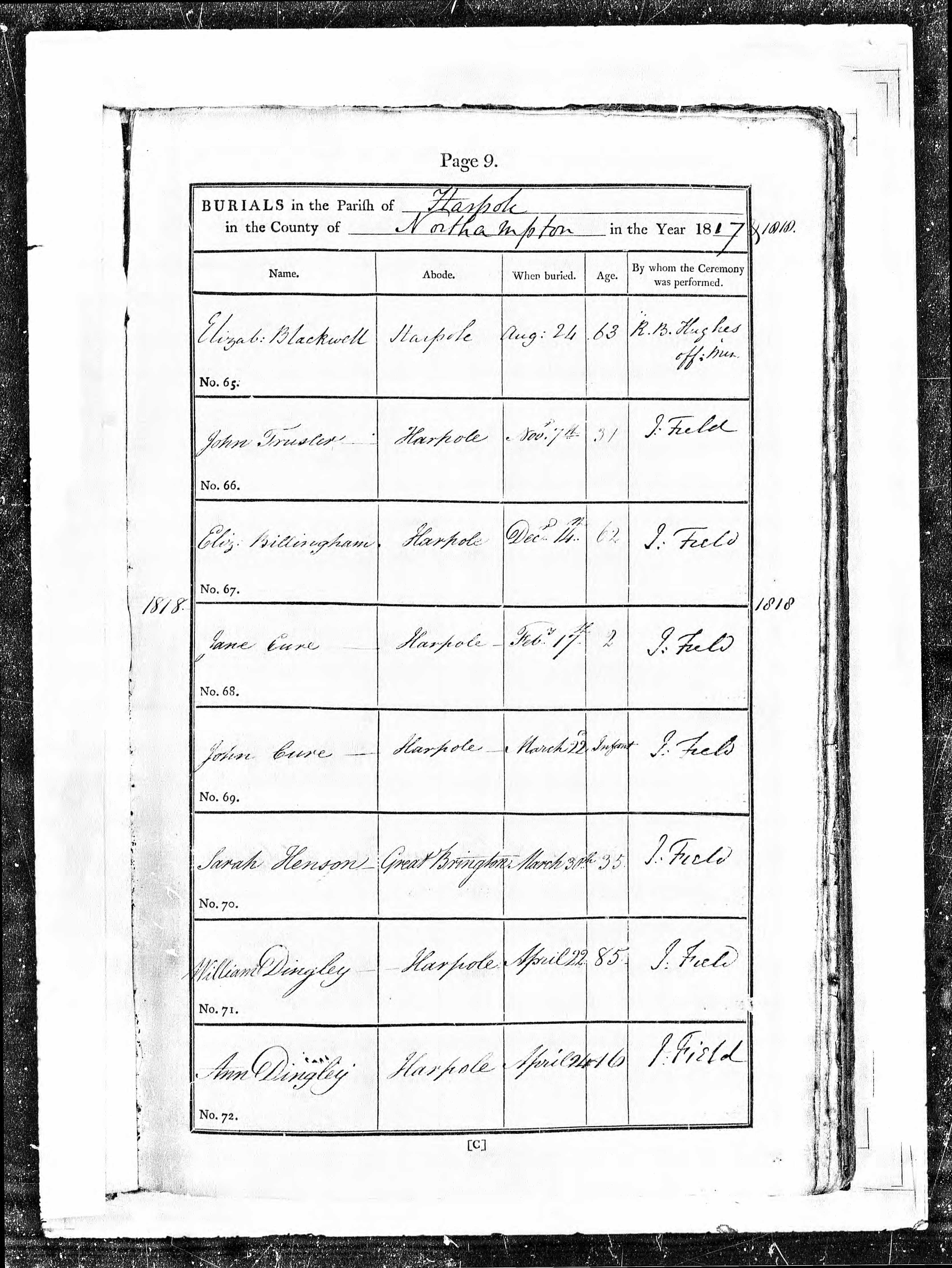 Cited from Parish Registers of All Saints, Harpole, Northamptonshire (Church of England)