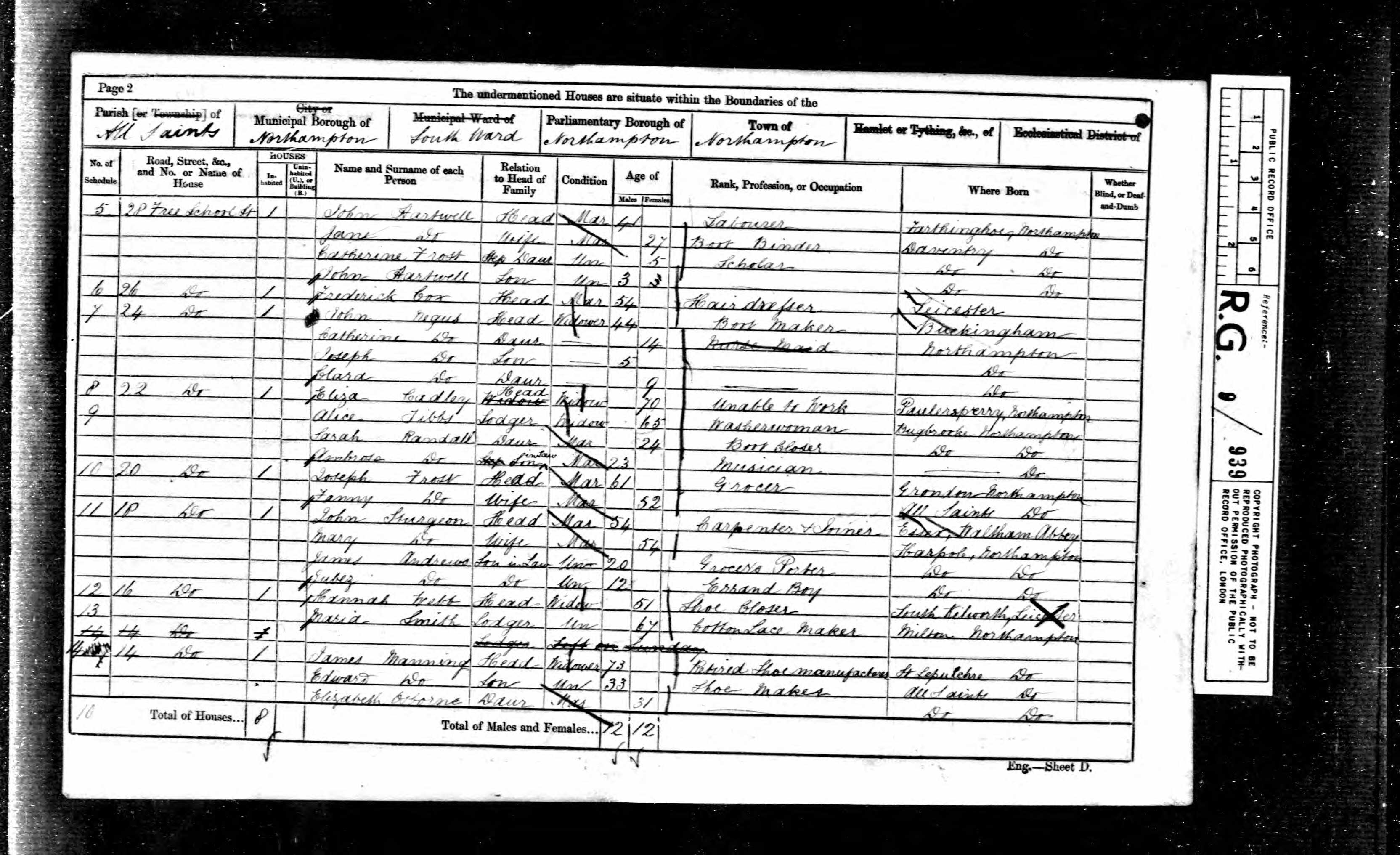 - was recorded in the census on 7 Apr, 1861 at 18 Free School Street, Northampton All Saints, Northampton, Northamptonshire, England