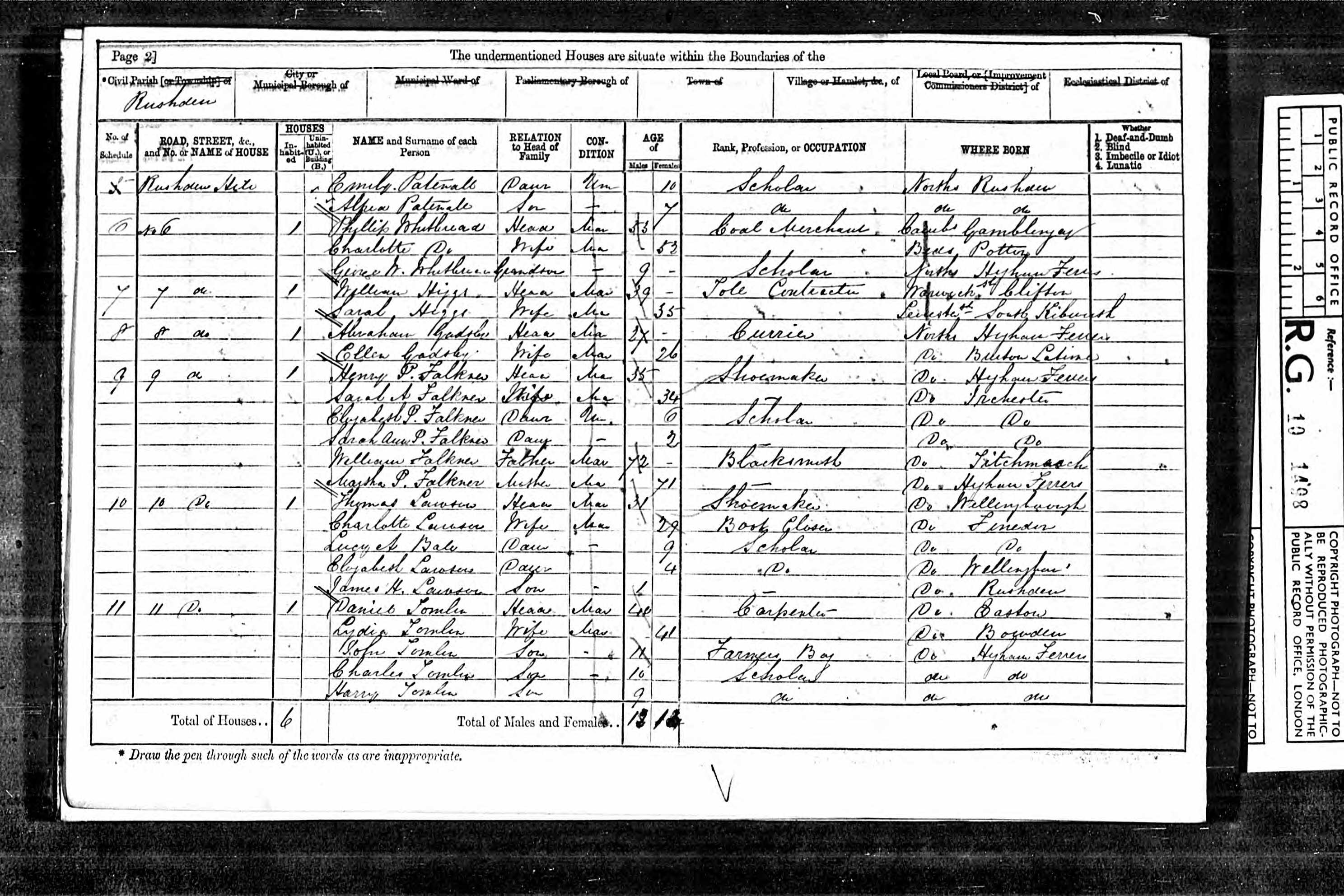 - was recorded in the census on 2 Apr, 1871 in Rushden Hill, Rushden, Northamptonshire, England
