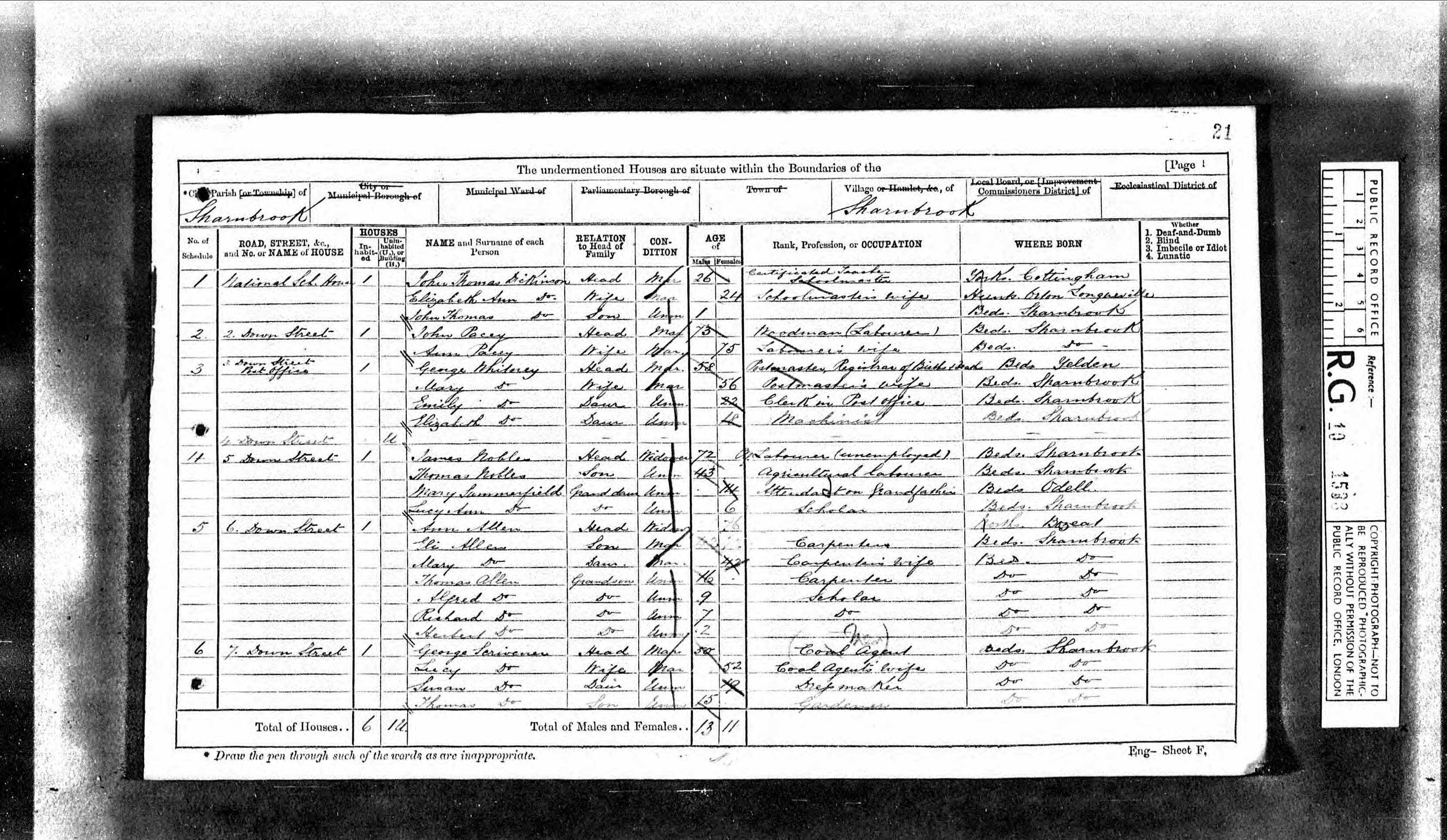 - was recorded in the census on 2 Apr, 1871 at 7 Down Street, Sharnbrook, Bedfordshire, England
