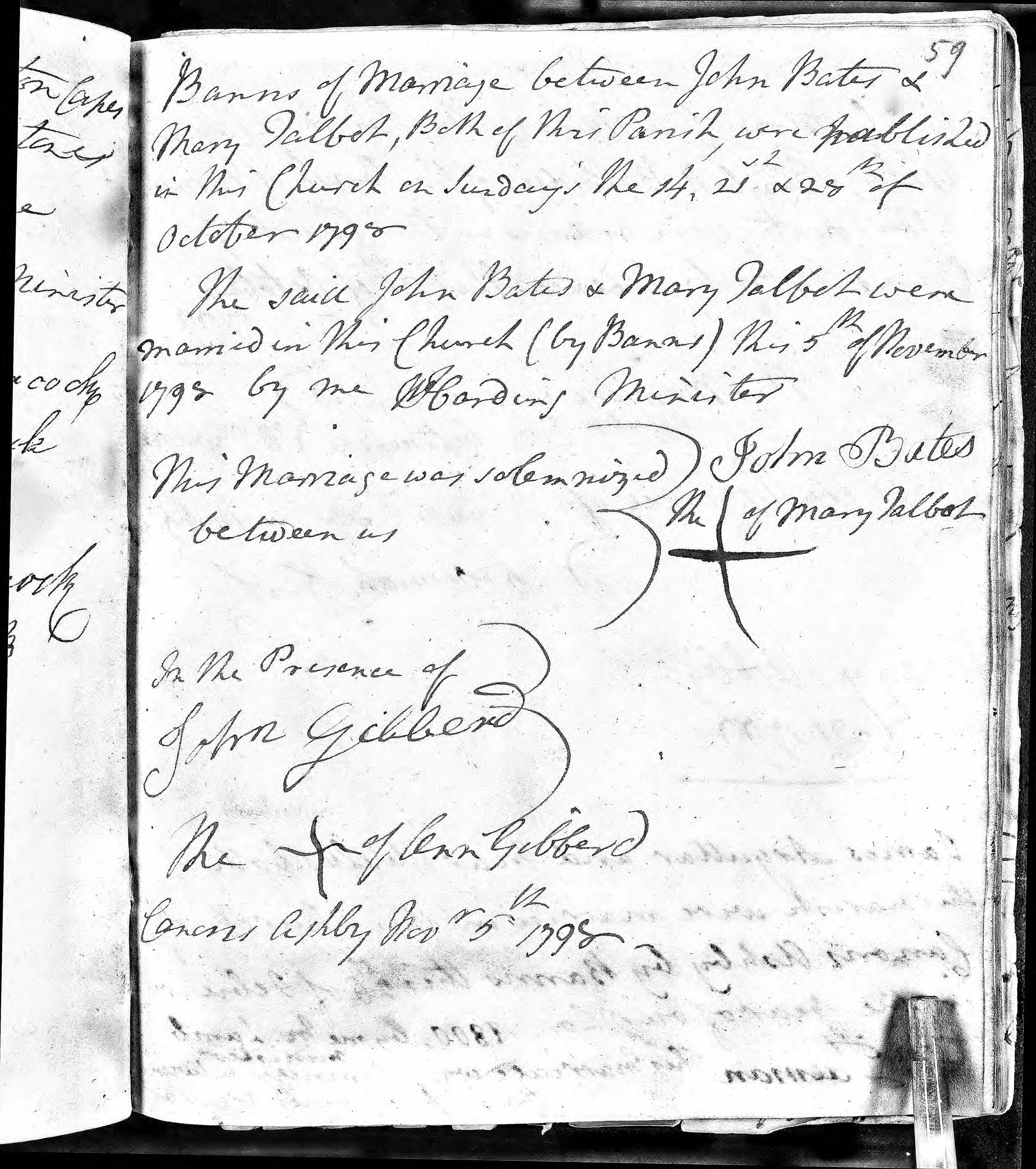 Marriage entry for John Bates and Mary Talbot, 5 Nov 1798, Page 59