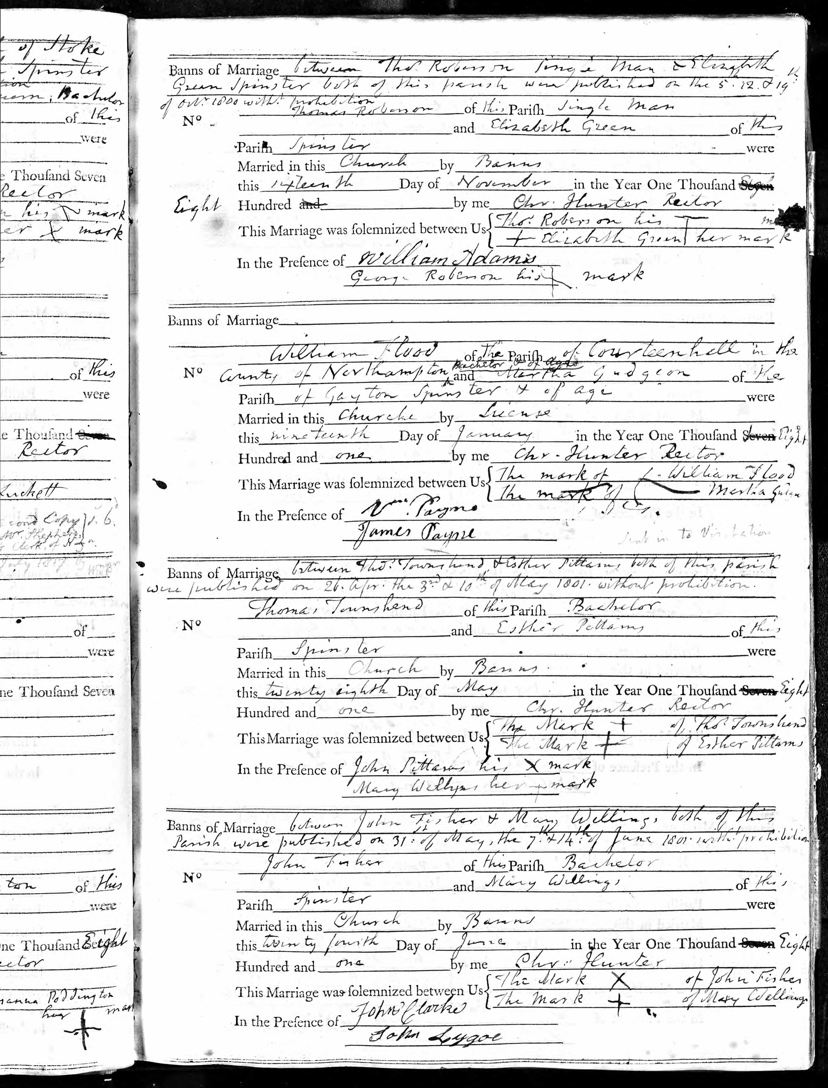 - Thomas Townsend★ and Hester Pitham★ was married on 28 May, 1801 at St. Nicholas Church, Gayton, Northamptonshire, England