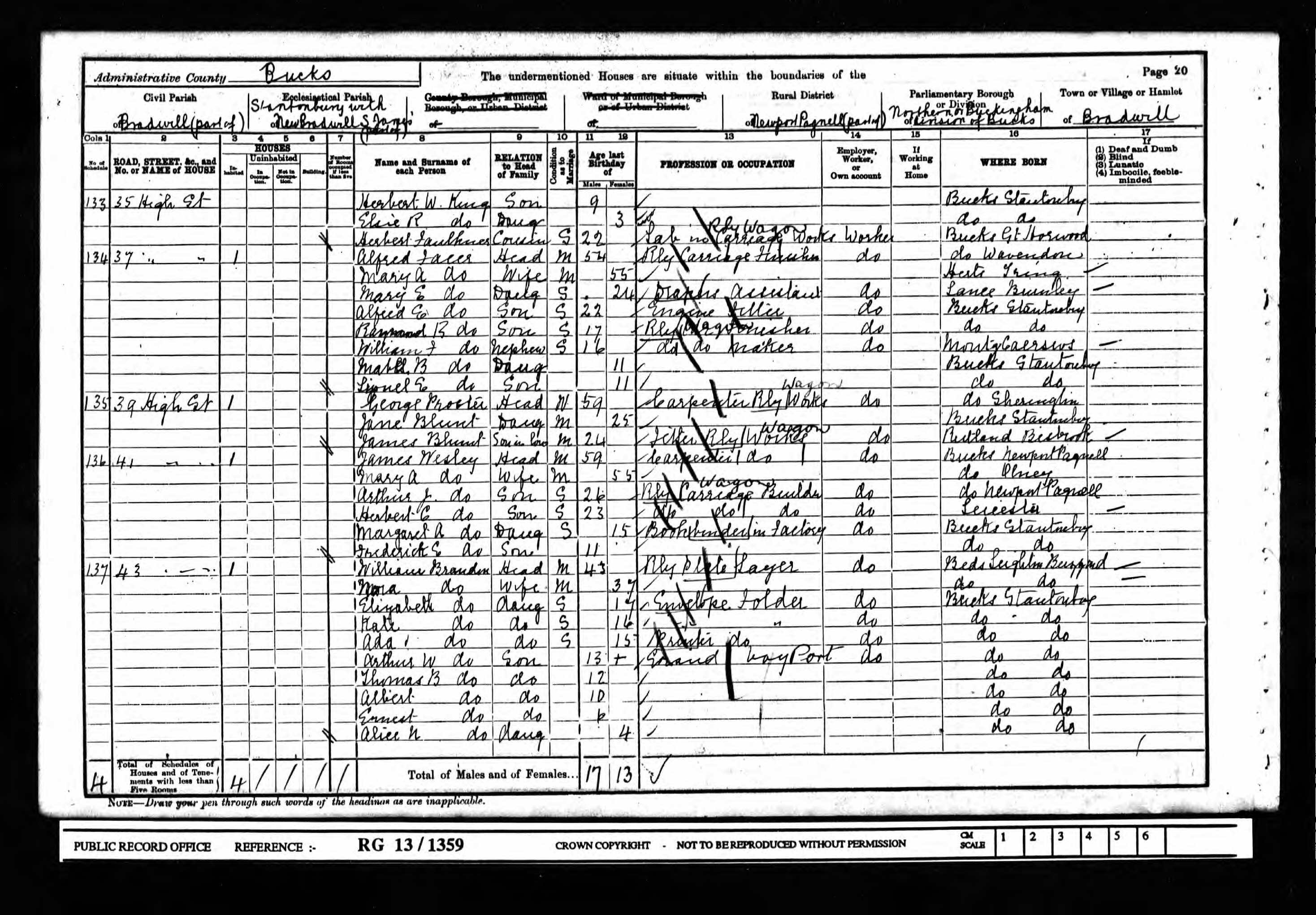 - was recorded in the census on 31 Mar, 1901 at 37 High Street, New Bradwell, Buckinghamshire, England