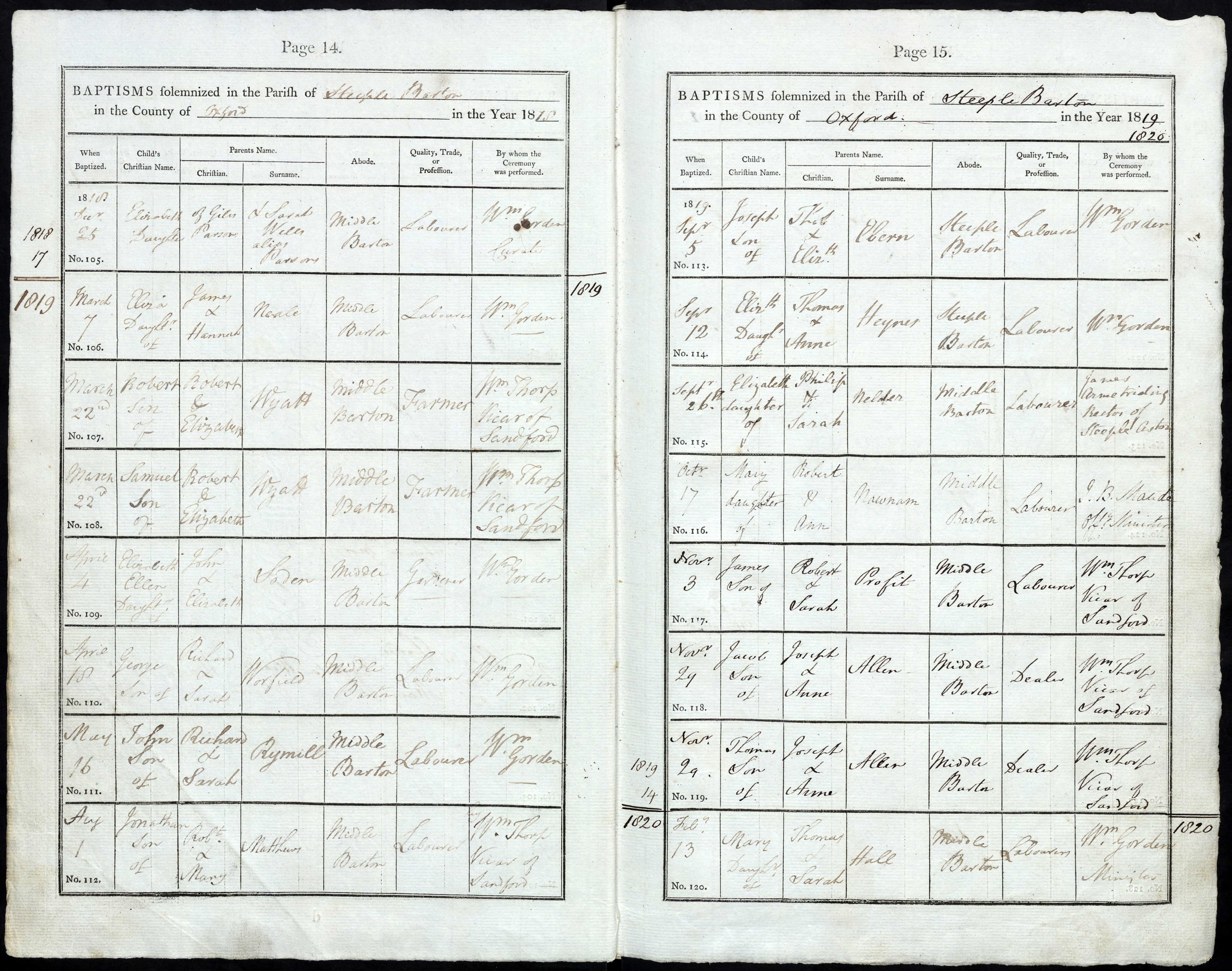 Cited from Parish Registers of St. Mary, Steeple Barton, Oxfordshire (Church of England)