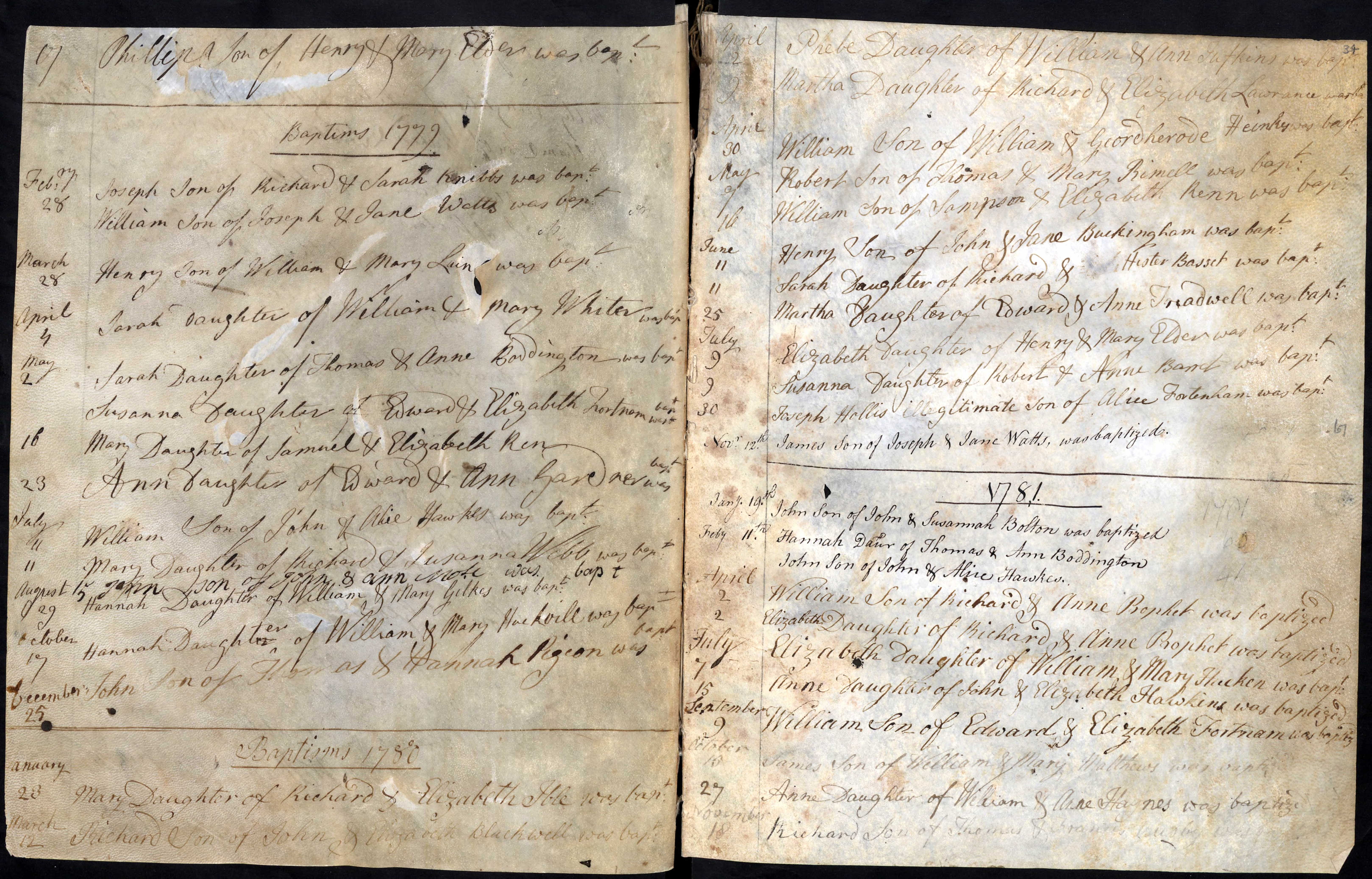 Parish Registers of St. Mary, Steeple Barton, Oxfordshire; Baptism entry for Robert Rimell, 9 May 1780.