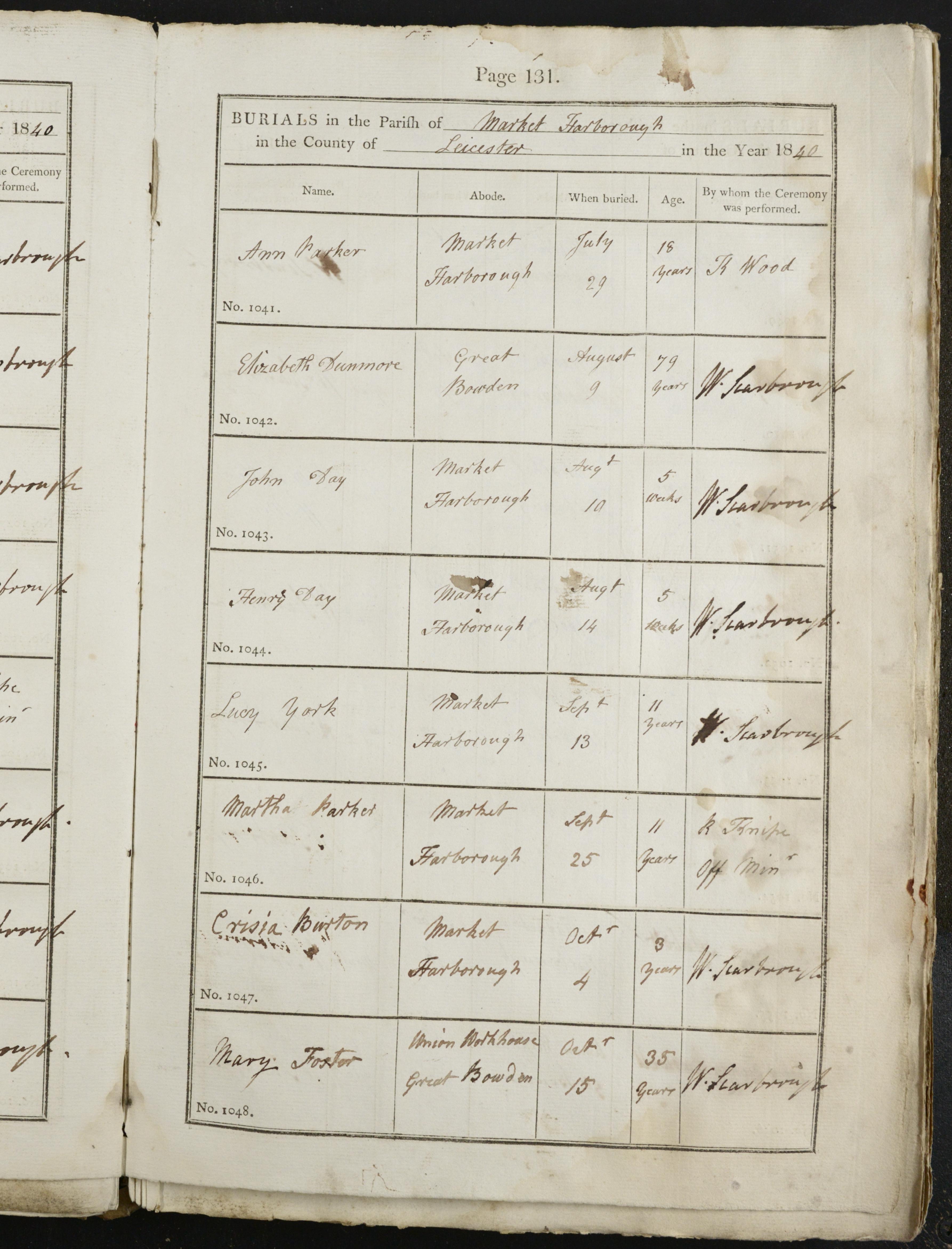 Cited from Parish Registers of St Dionysius, Market Harborough, Leicestershire (Church of England)