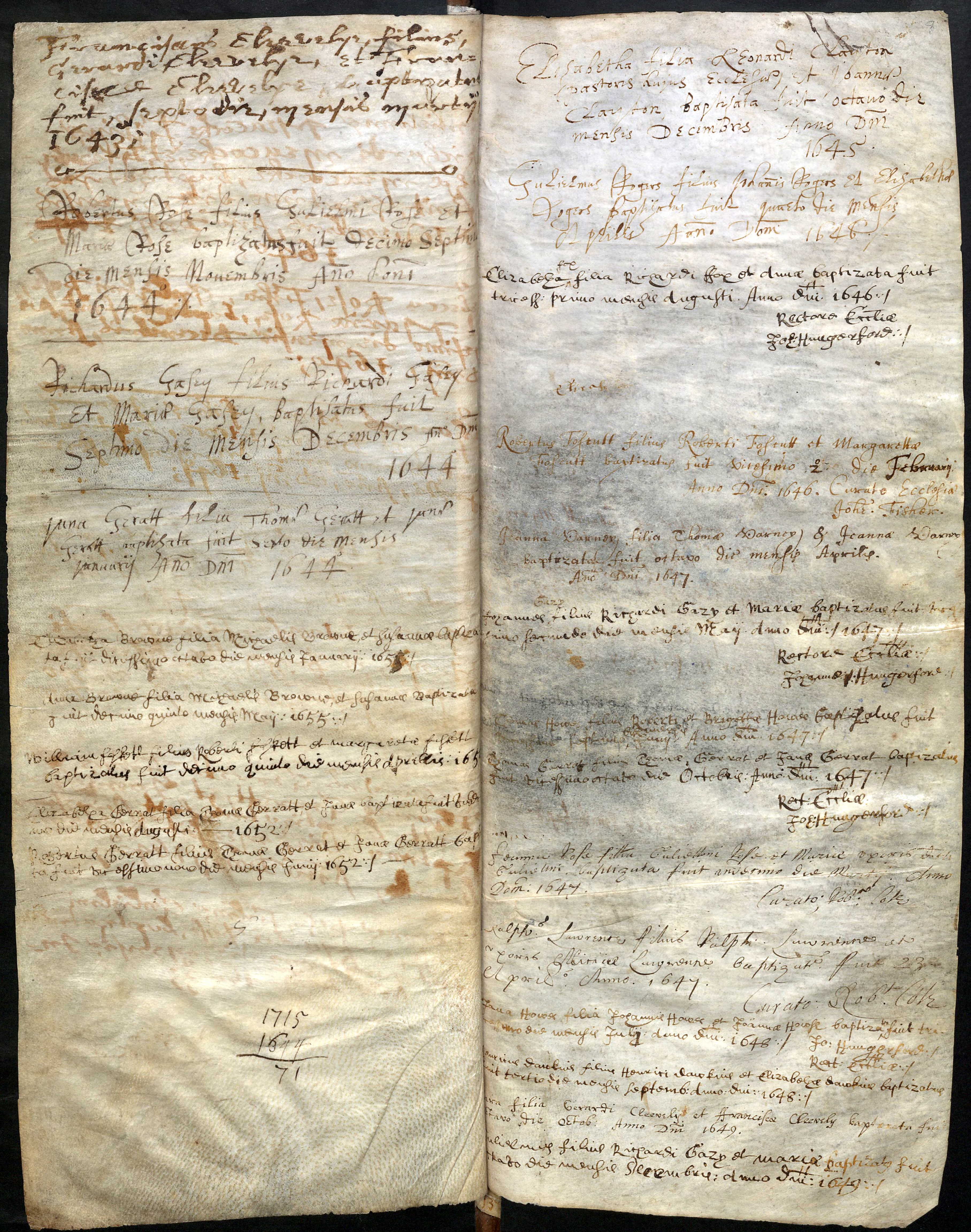 Parish Registers of St. Mary, Upper Heyford, Oxfordshire; Baptism entry for Robertus Rose, 17 Nov 1644.