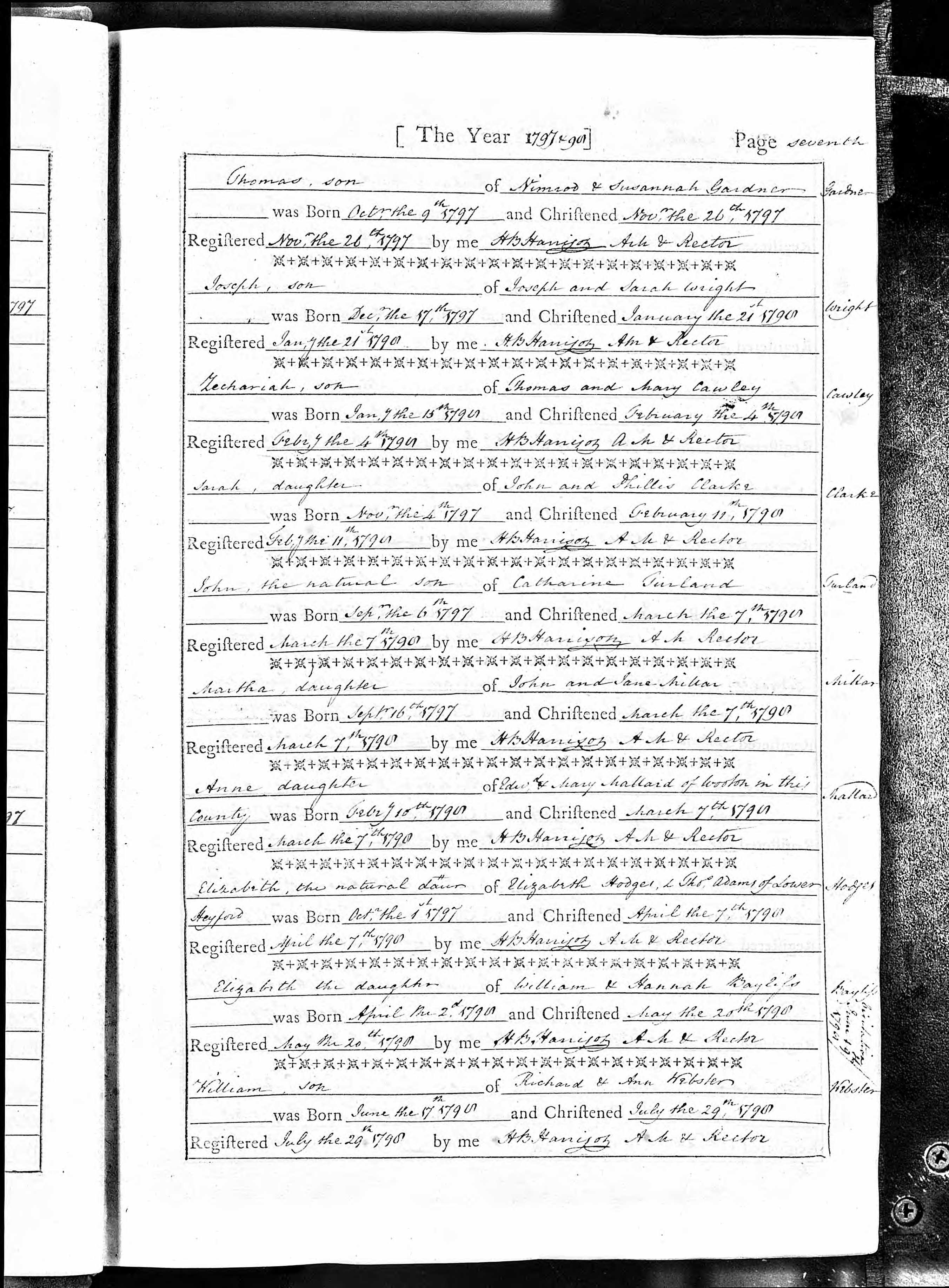 Baptism entry for Sarah Clarke, 11 Feb 1798, Page seventh
