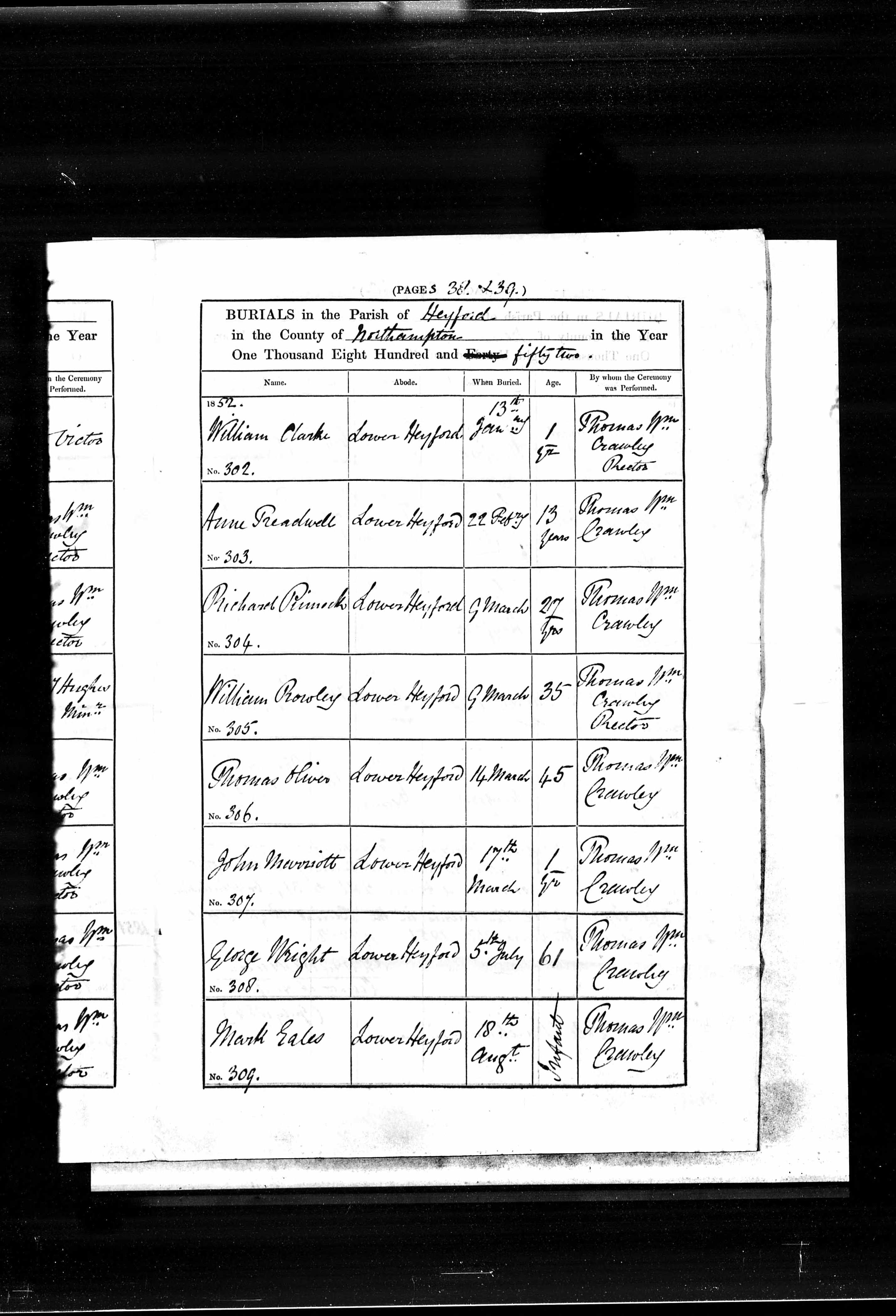 - William Clarke died on 12 Jan, 1852 in Nether Heyford, Northamptonshire, England