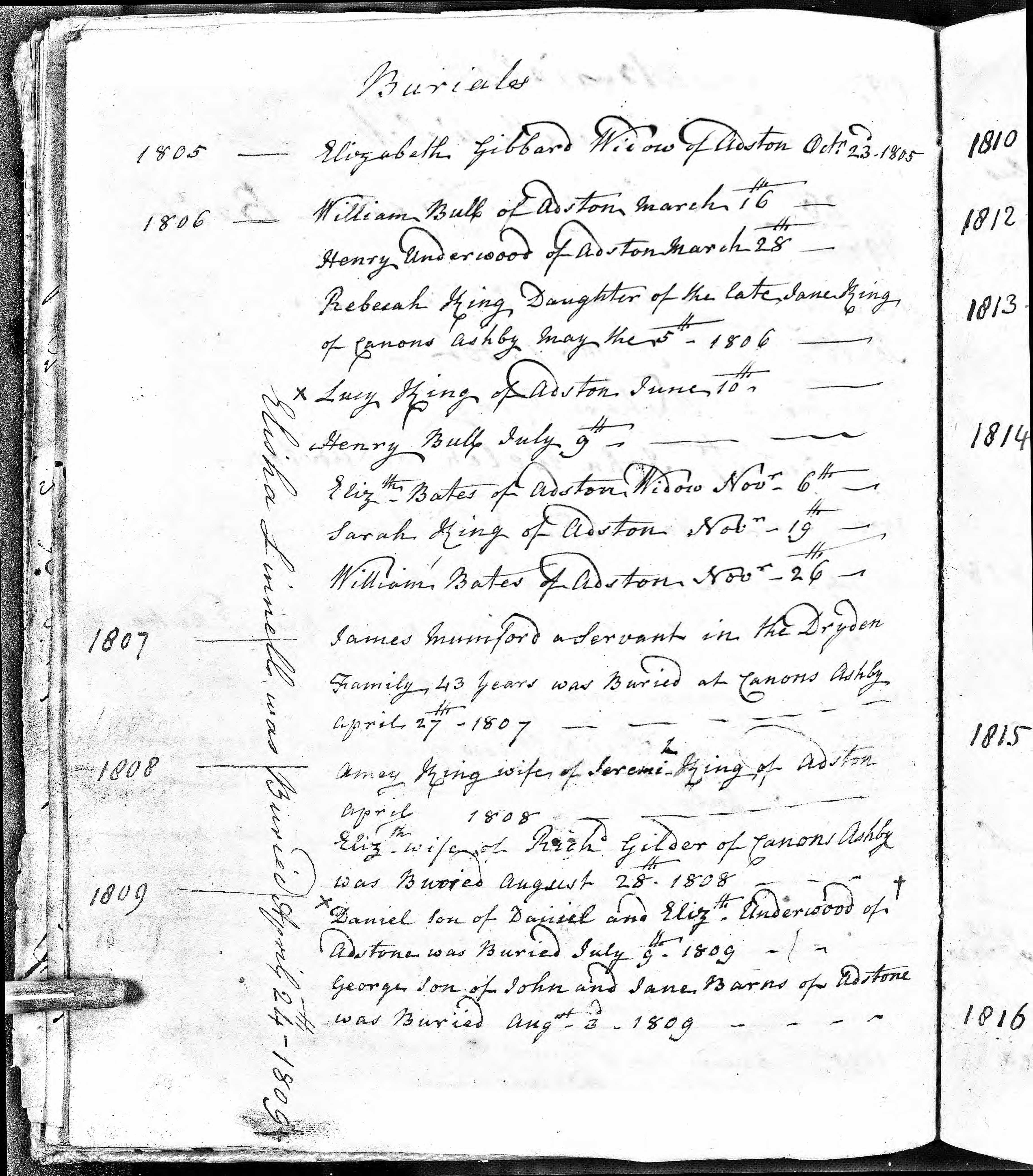Cited from Parish Registers of St. Mary, Canons Ashby, Northamptonshire (Church of England)