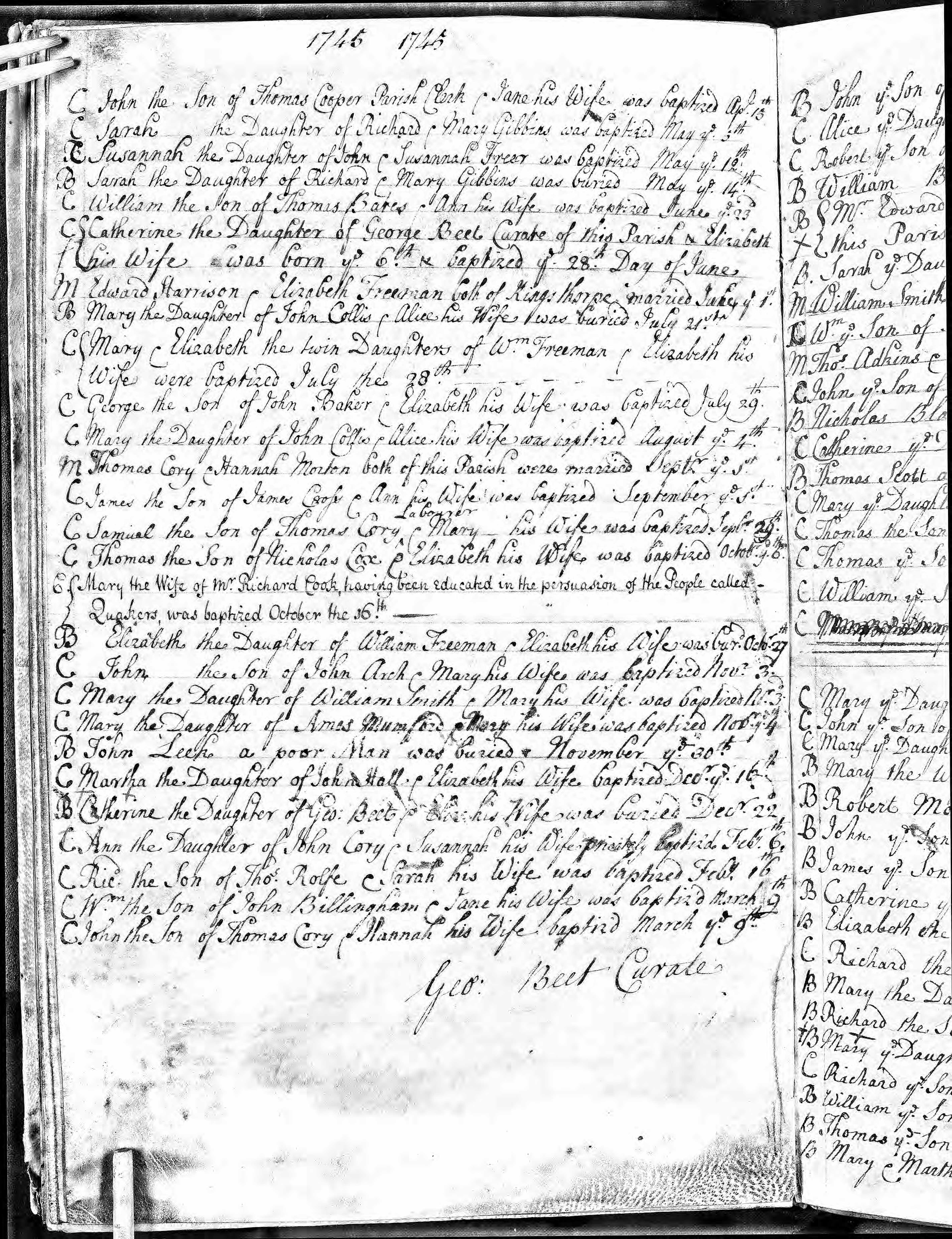 - William Billingham was baptised on 9 Mar, 1745/6 in Harpole, Northamptonshire, England