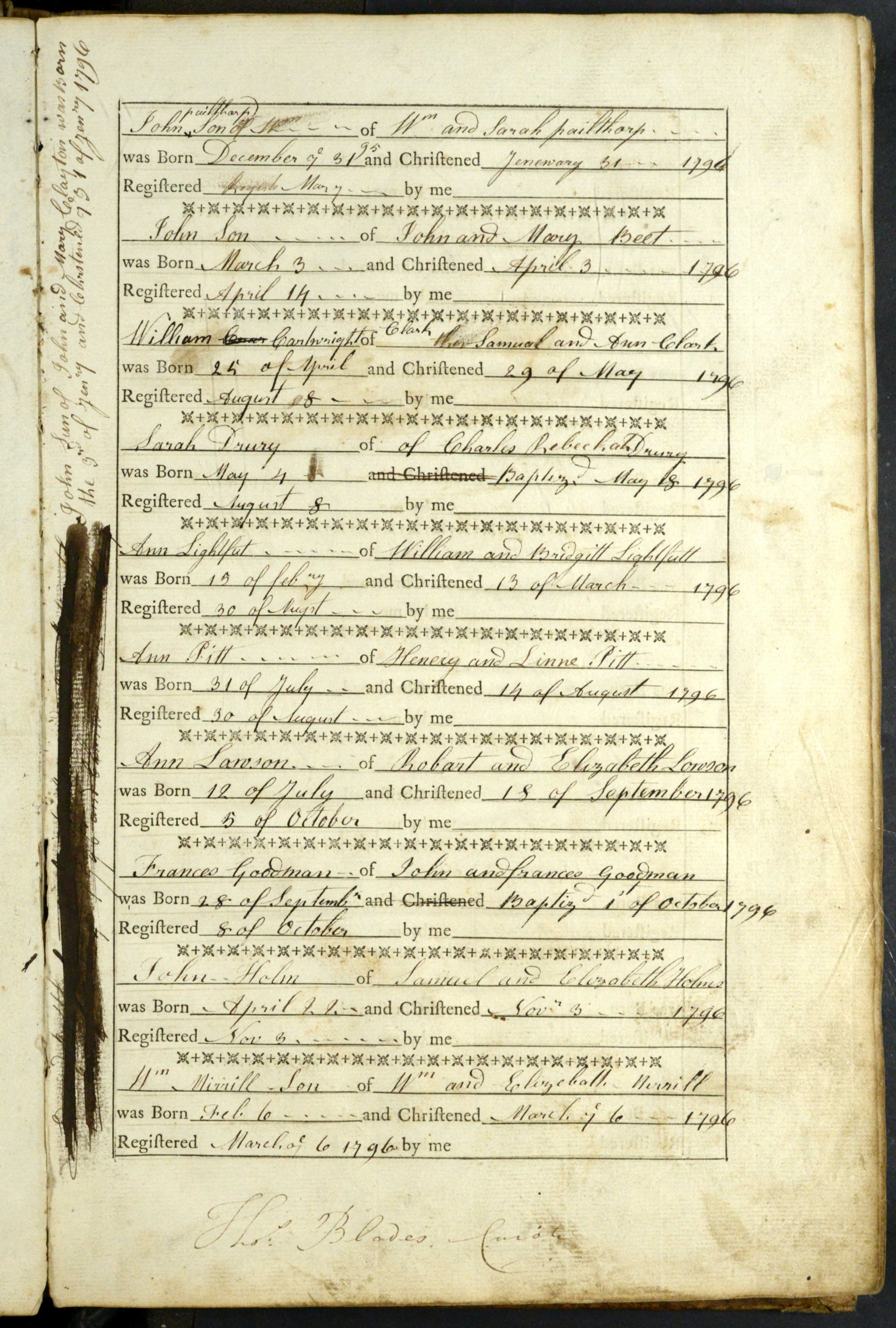 Ann Lawson of Robert and Elizabeth Lawson, born 12 Jul, christened 18 Sep 1796, registered 5 Oct