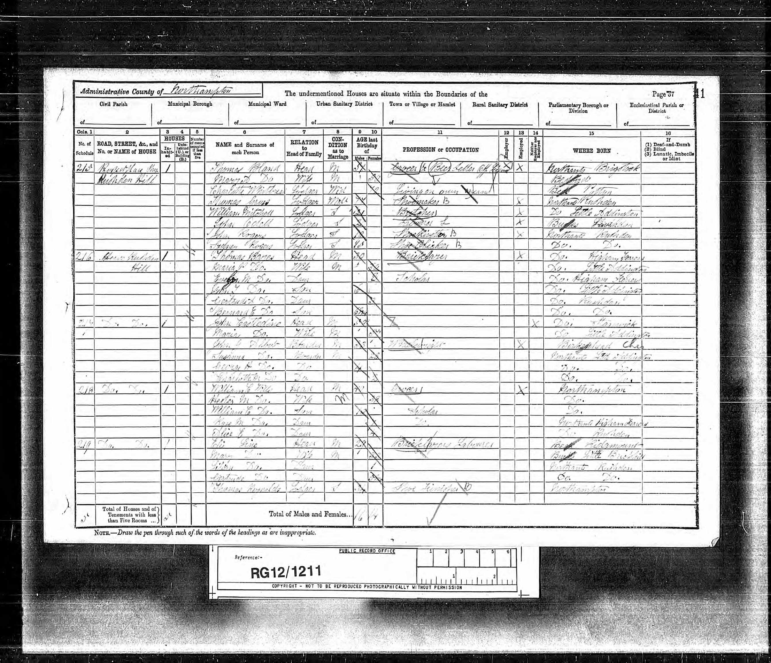 1891 England and Wales Census; Class RG12, Piece 1211, Folio 41, Page 37, Schedule 215.