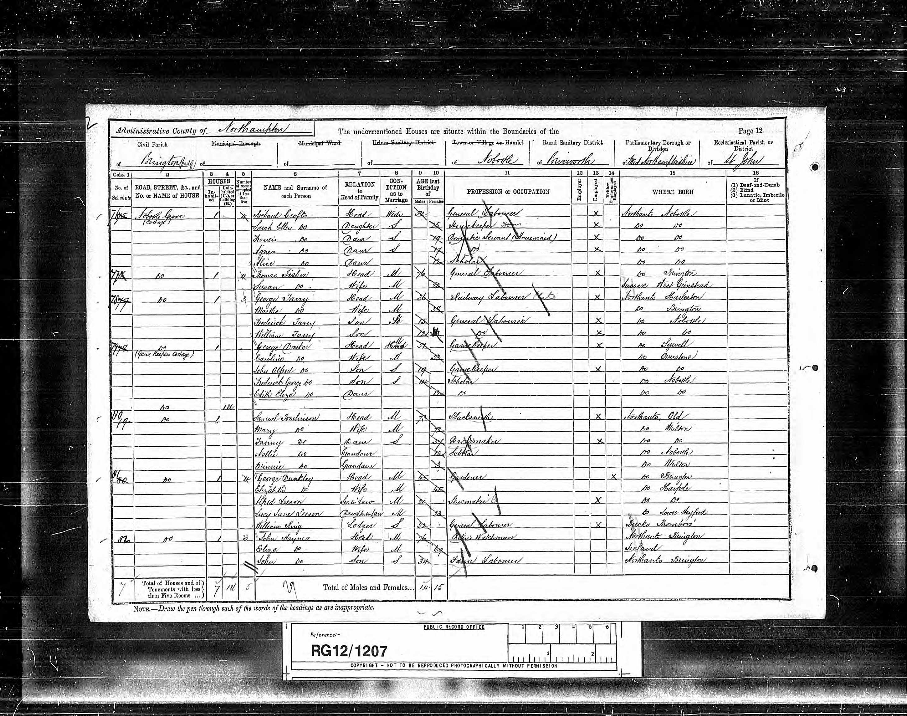 - was recorded in the census on 5 Apr, 1891 at Nobottle Grove, Brington, Northamptonshire, England