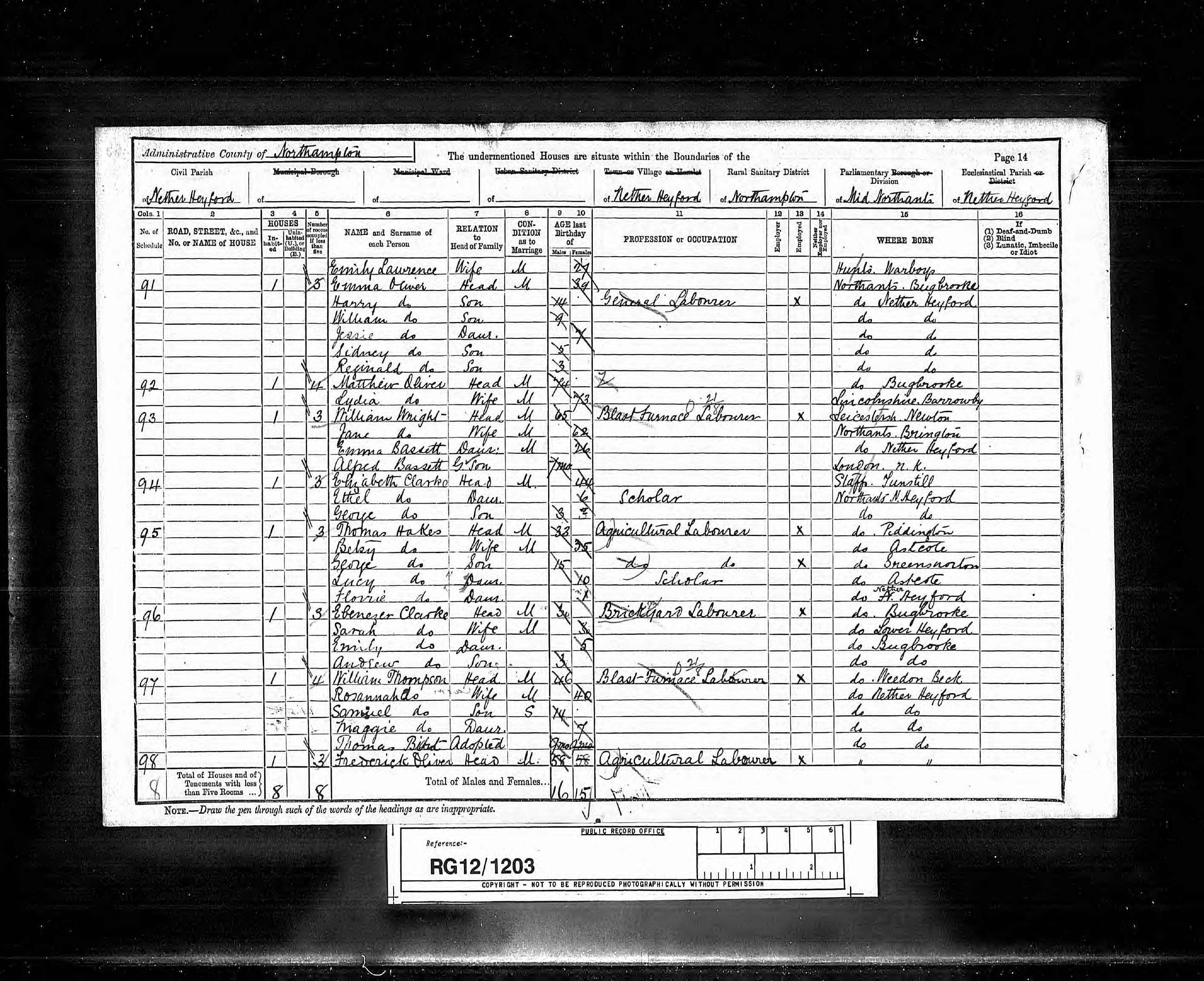 - was recorded in the census on 5 Apr, 1891 in Nether Heyford, Northamptonshire, England