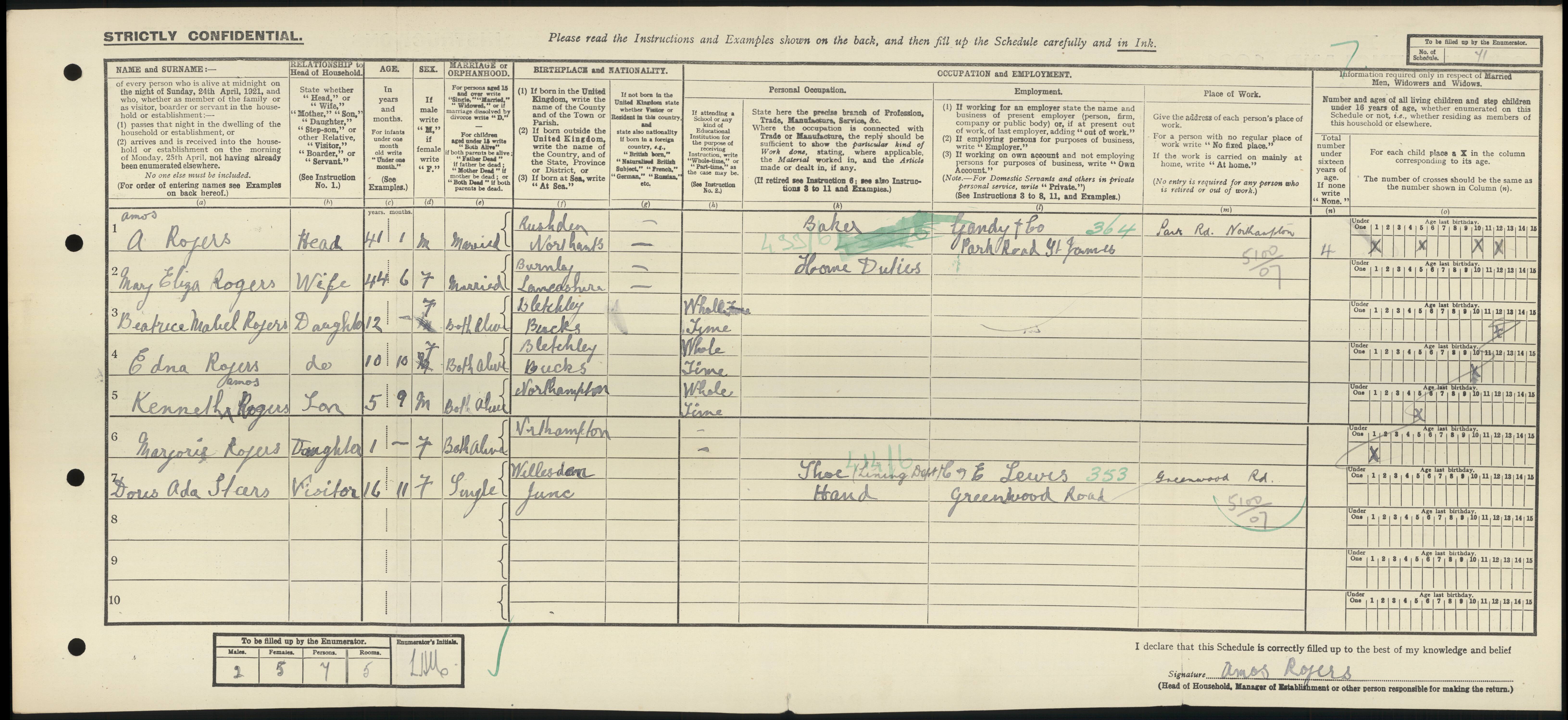 - Amos Rogersā had occupation recorded as baker on 19 Jun, 1921 at Park Road, Northampton, Northamptonshire, England