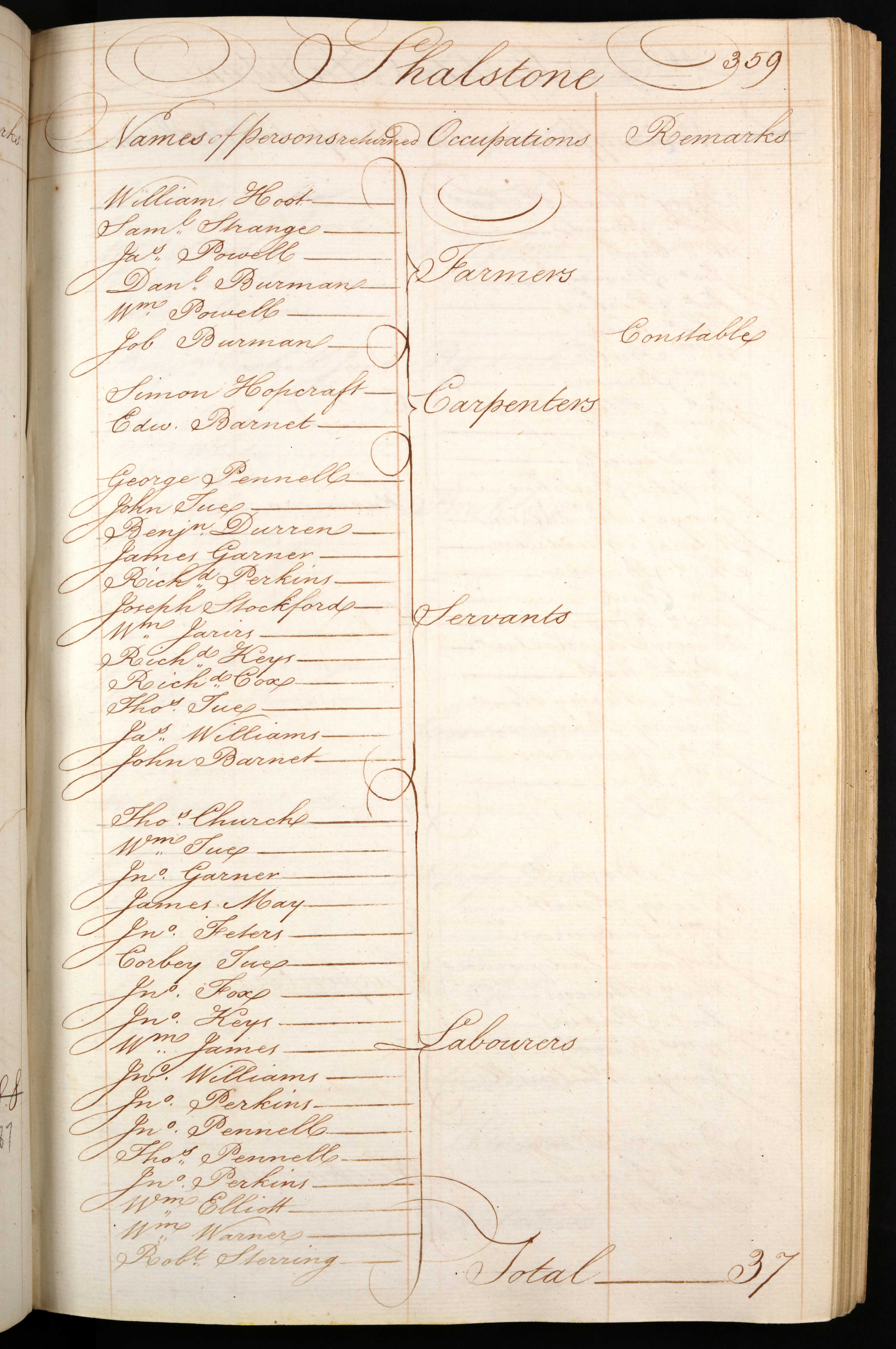 Buckinghamshire Posse Comitatus of 1798; Page 359, Shalstone, Labourers, Wm Tue.
