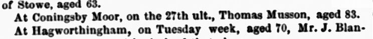 Nottingham Journal; No 7418, 11 Feb 1853, Page 8, Col 2, Lincolnshire, Deaths, Thomas Musson.