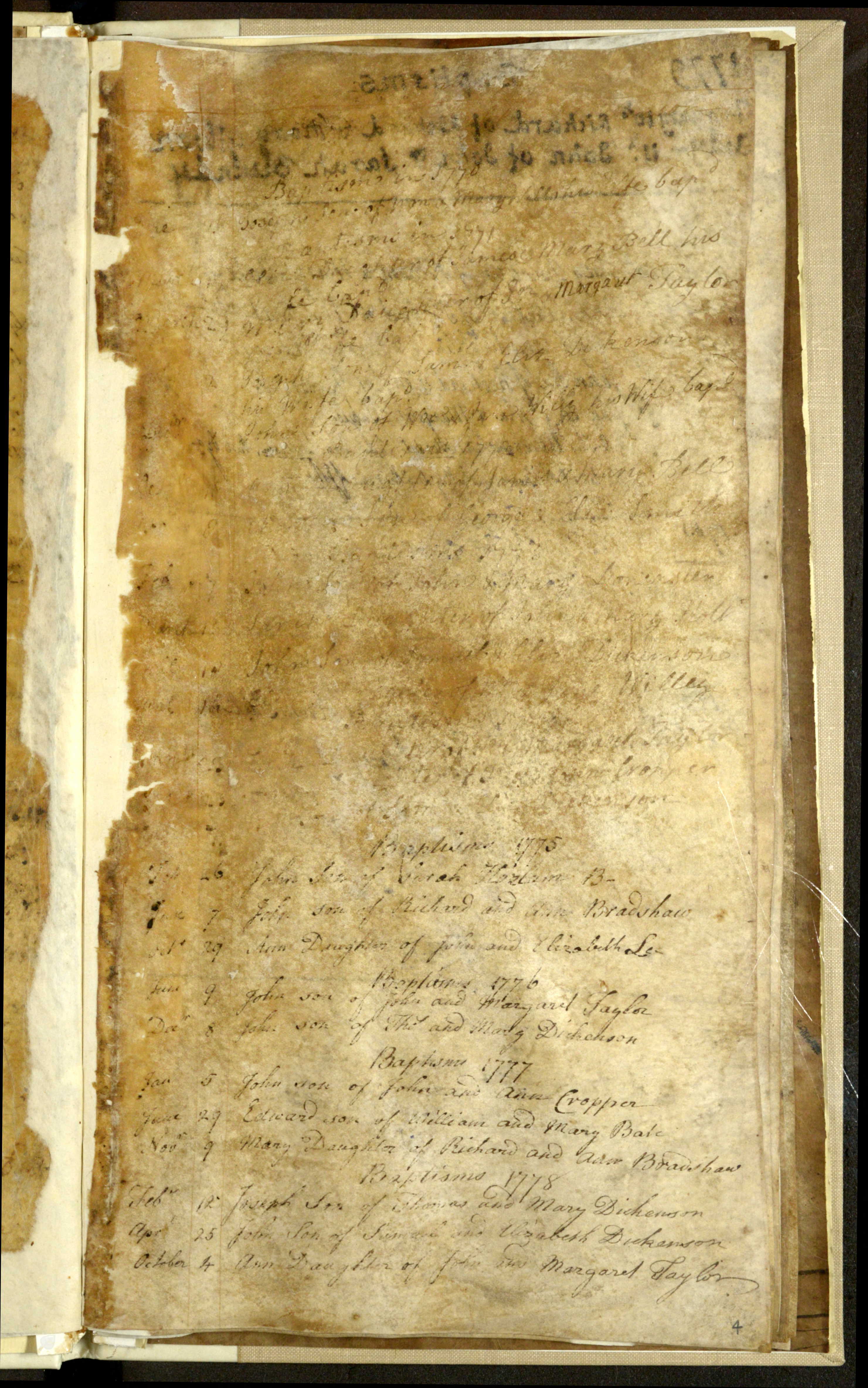 Parish Registers of St. Giles, Holme, Nottinghamshire; Baptism entry for Mary Taylor, illegible date in 1771.