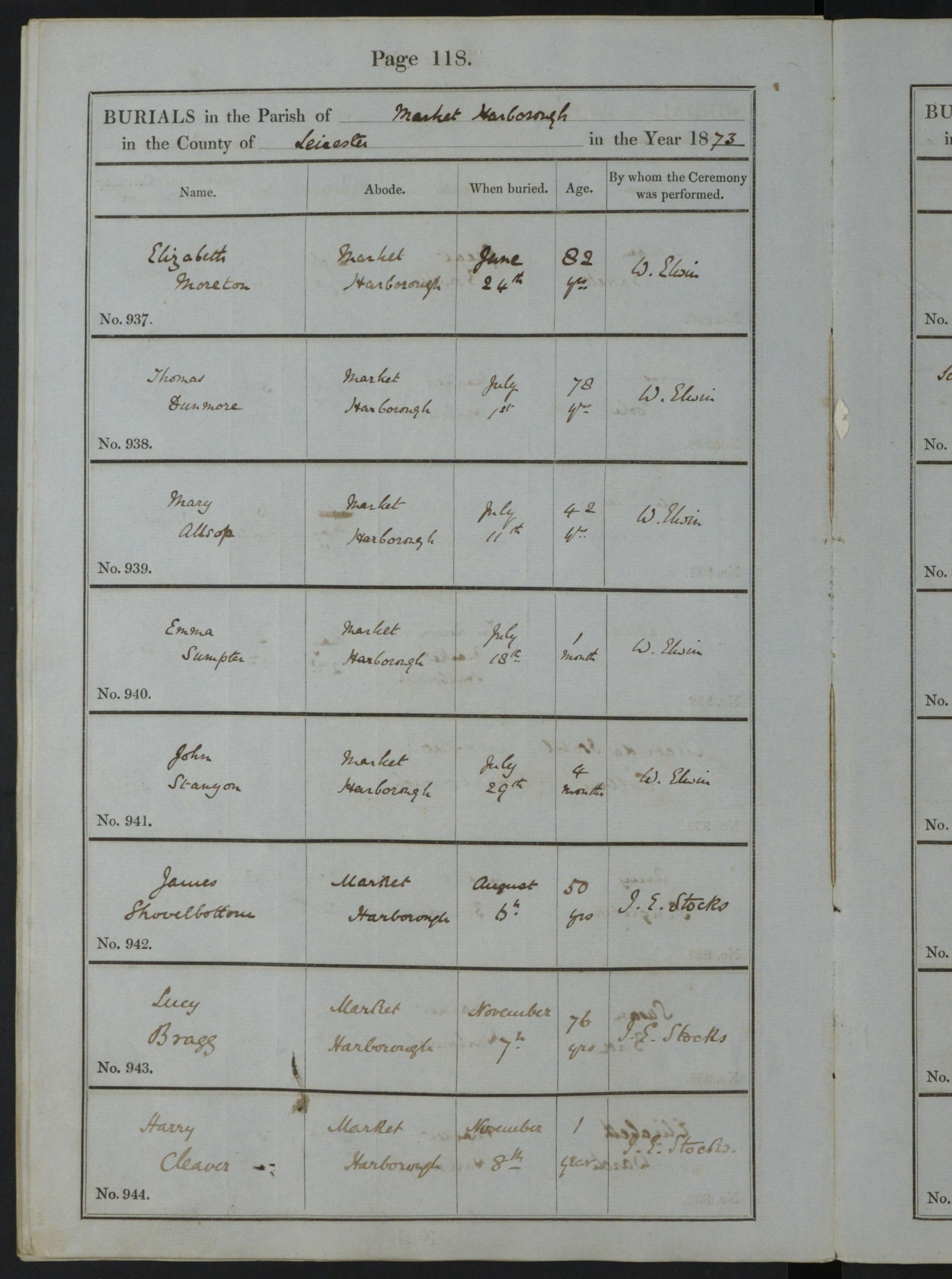 Cited from Parish Registers of St Dionysius, Market Harborough, Leicestershire (Church of England)