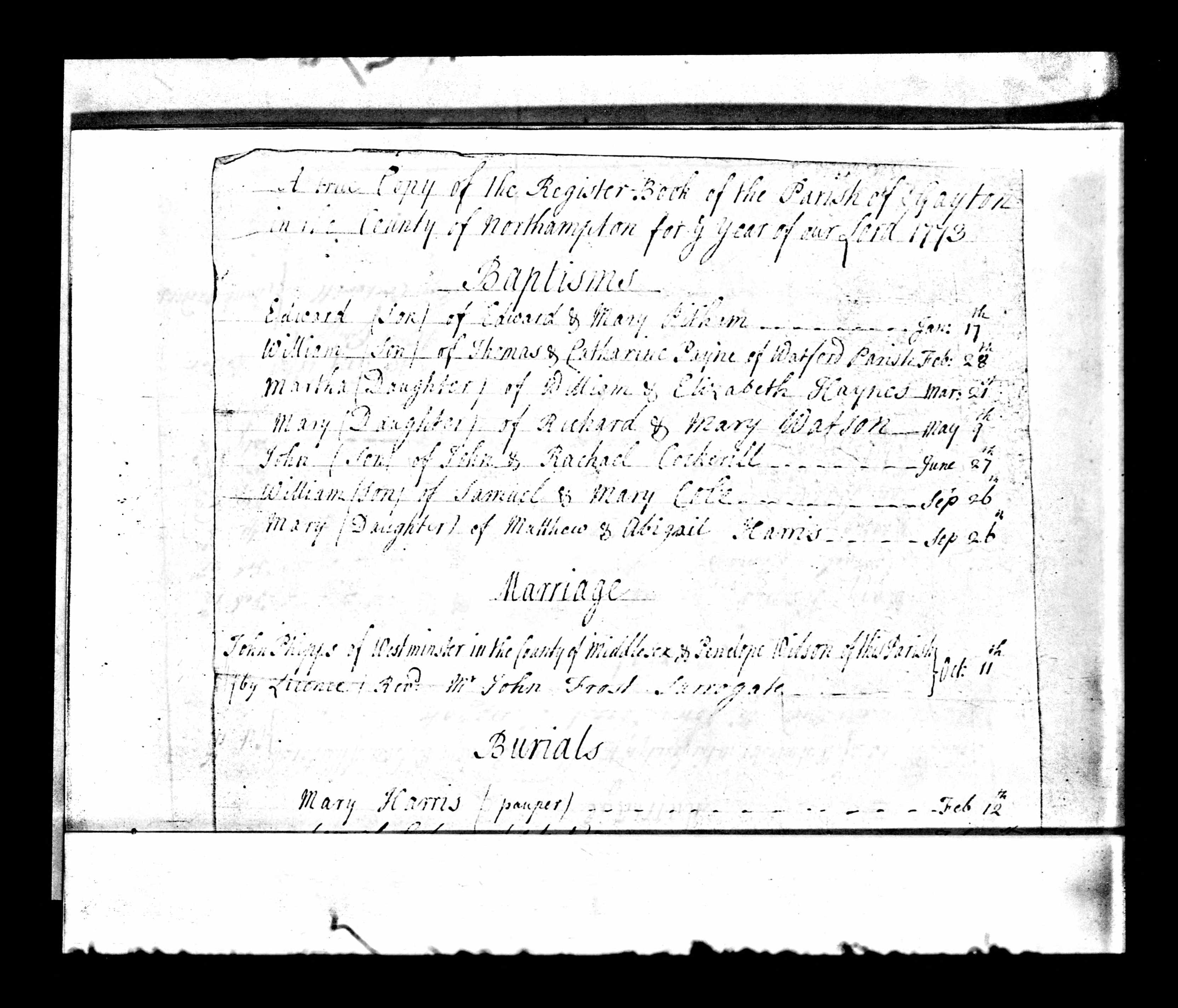 - Edward Pitham was baptised on 17 Jan, 1773 at St. Nicholas Church, Gayton, Northamptonshire, England