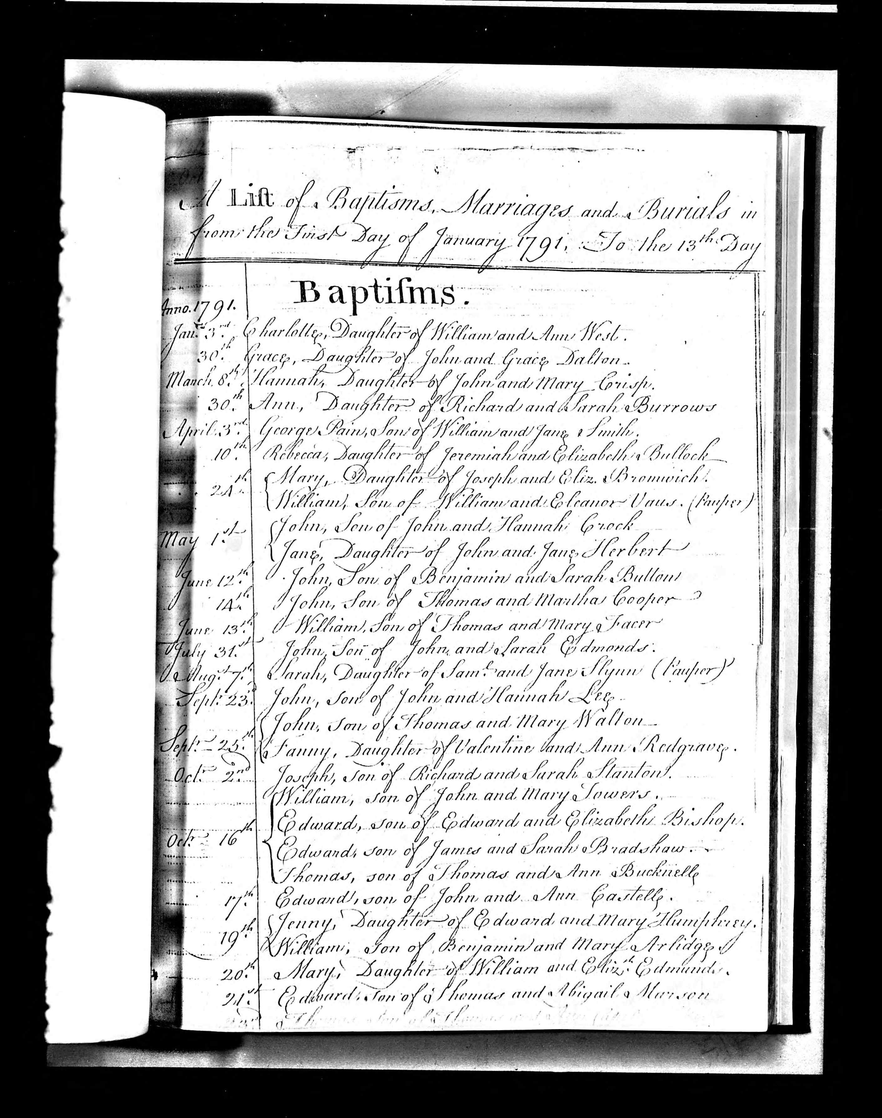 - John Crock was baptised on 1 May, 1791 at St. Margaret's Church, Crick, Northamptonshire, England
