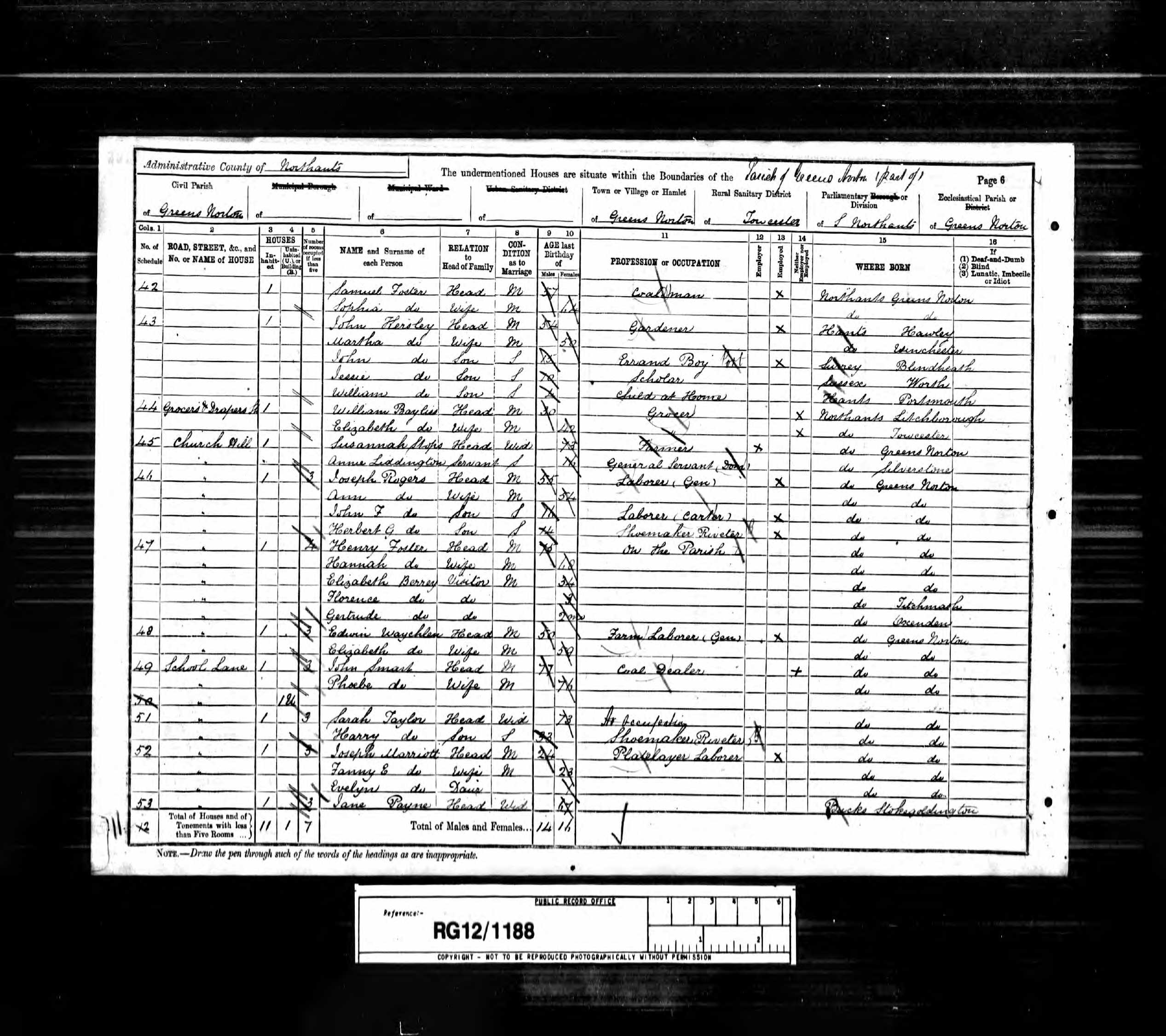 1891 England and Wales Census; Class RG12, Piece 1188, Folio 100, Page 6, Schedule 46.