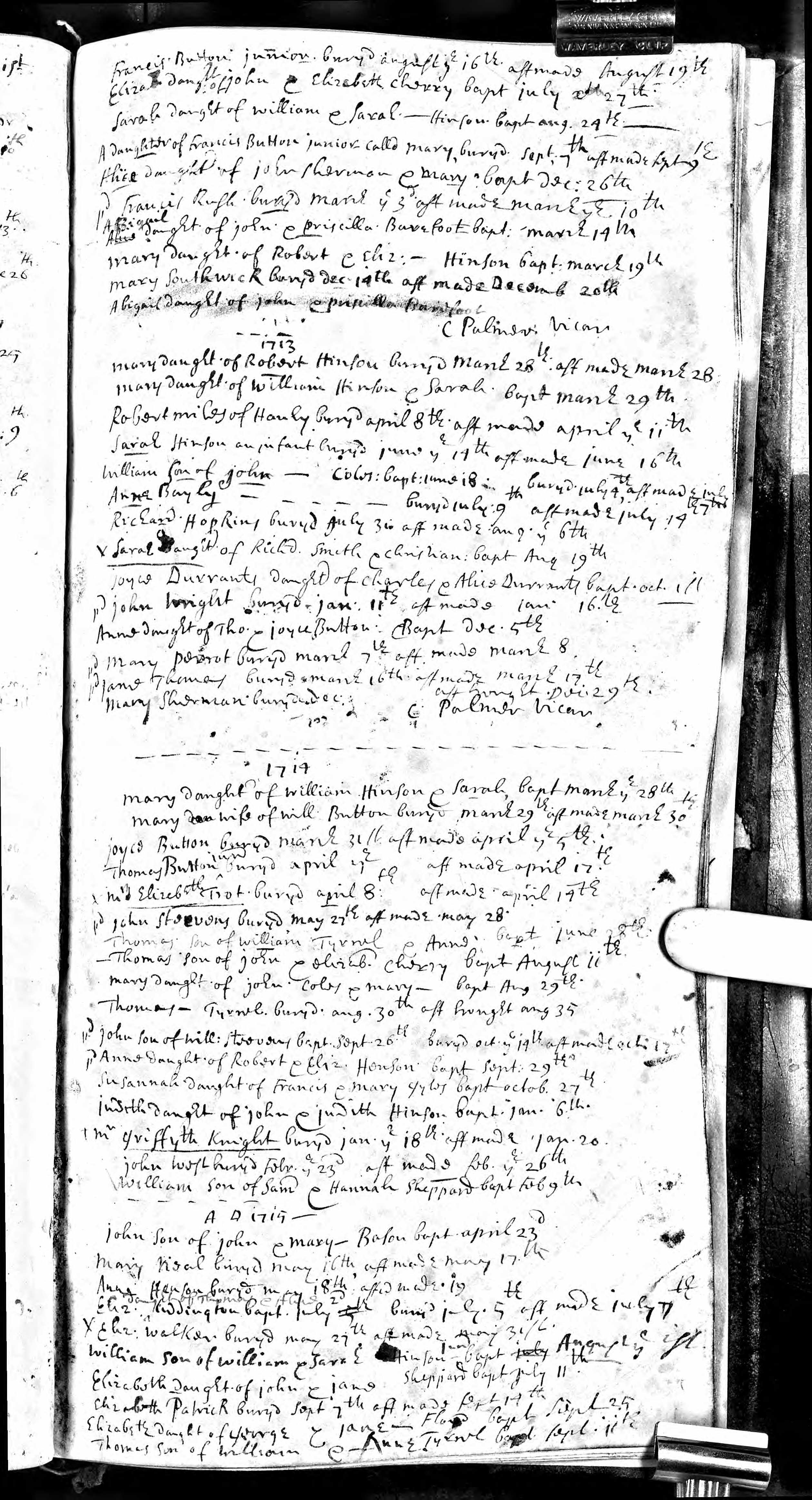 - William Hinson was baptised on 1 Aug, 1715 at St. John's Church, Abthorpe, Northamptonshire, England