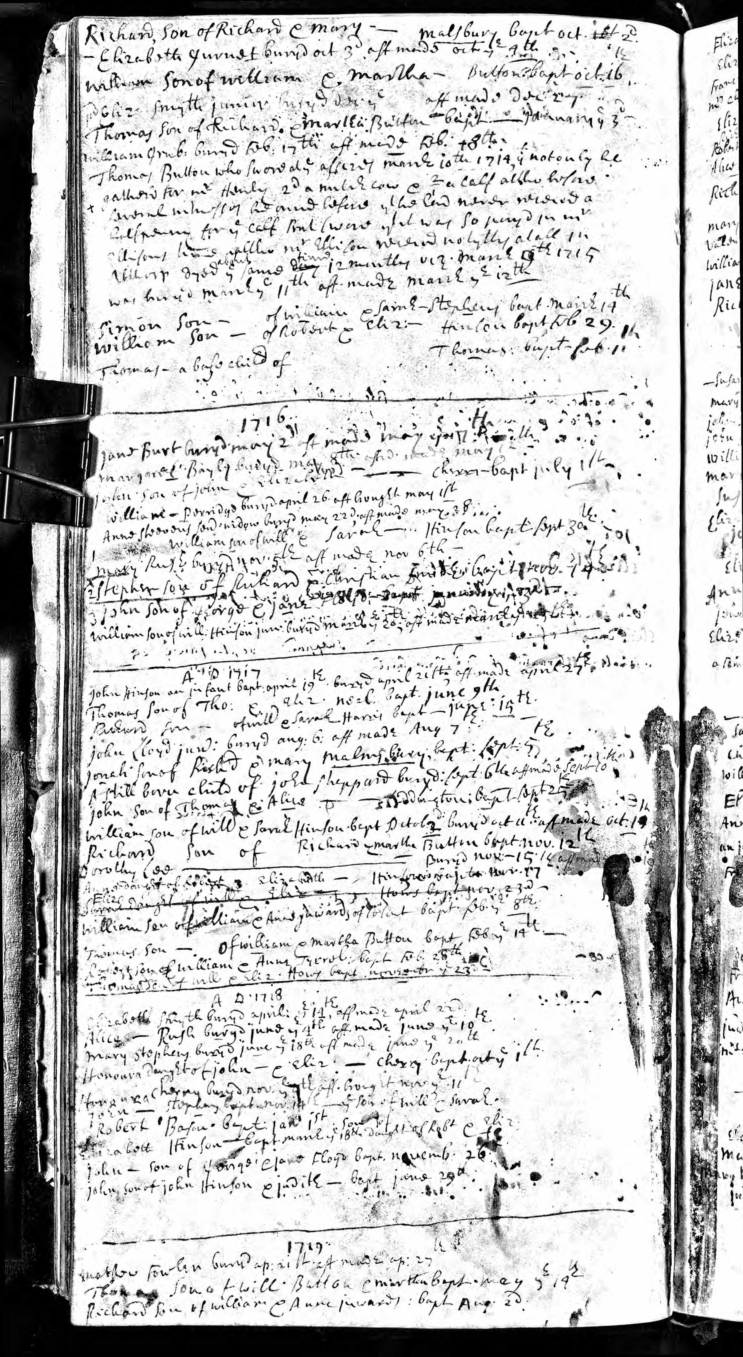 BaptismAndBurialOfWilliamHinson1716Abthorpe