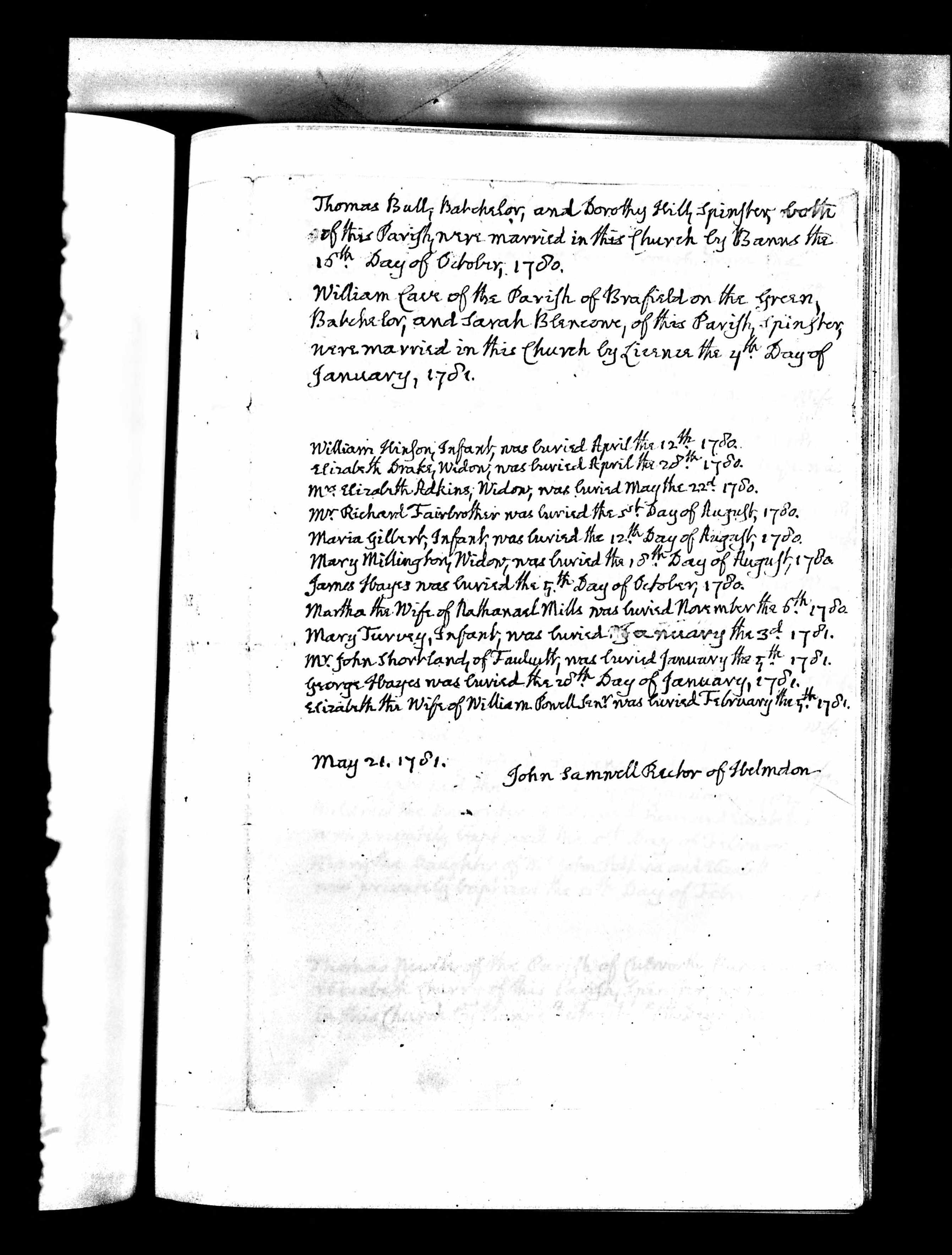 - William Hinson was buried on 23 Apr, 1780 at St. Mary Magdalene Church, Helmdon, Northamptonshire, England