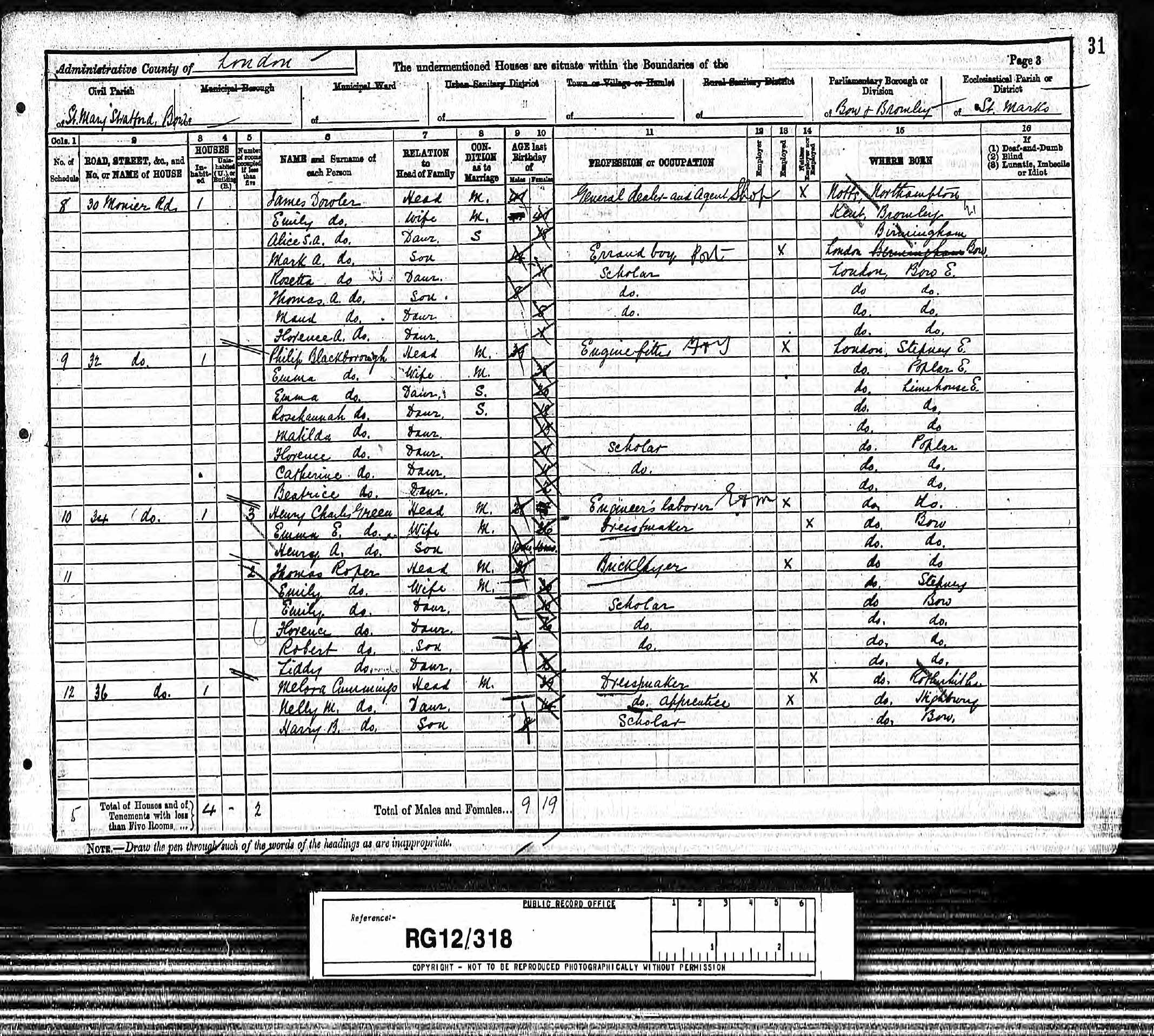 1891 England and Wales Census; Class RG12, Piece 318, Folio 31, Page 3, Schedule 9.