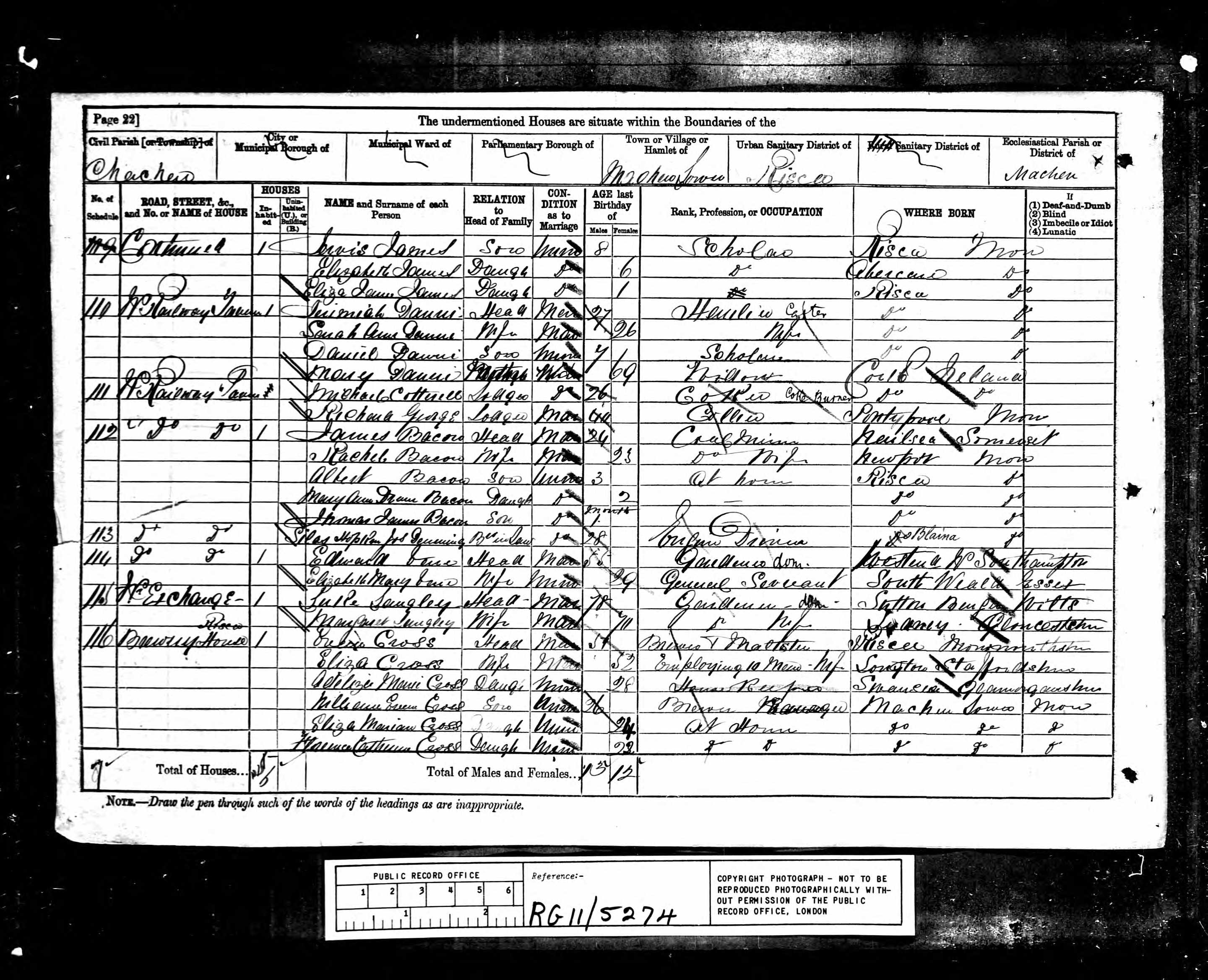 Class RG11, Piece 5274, Folio 70, Page 22, Schedule 110