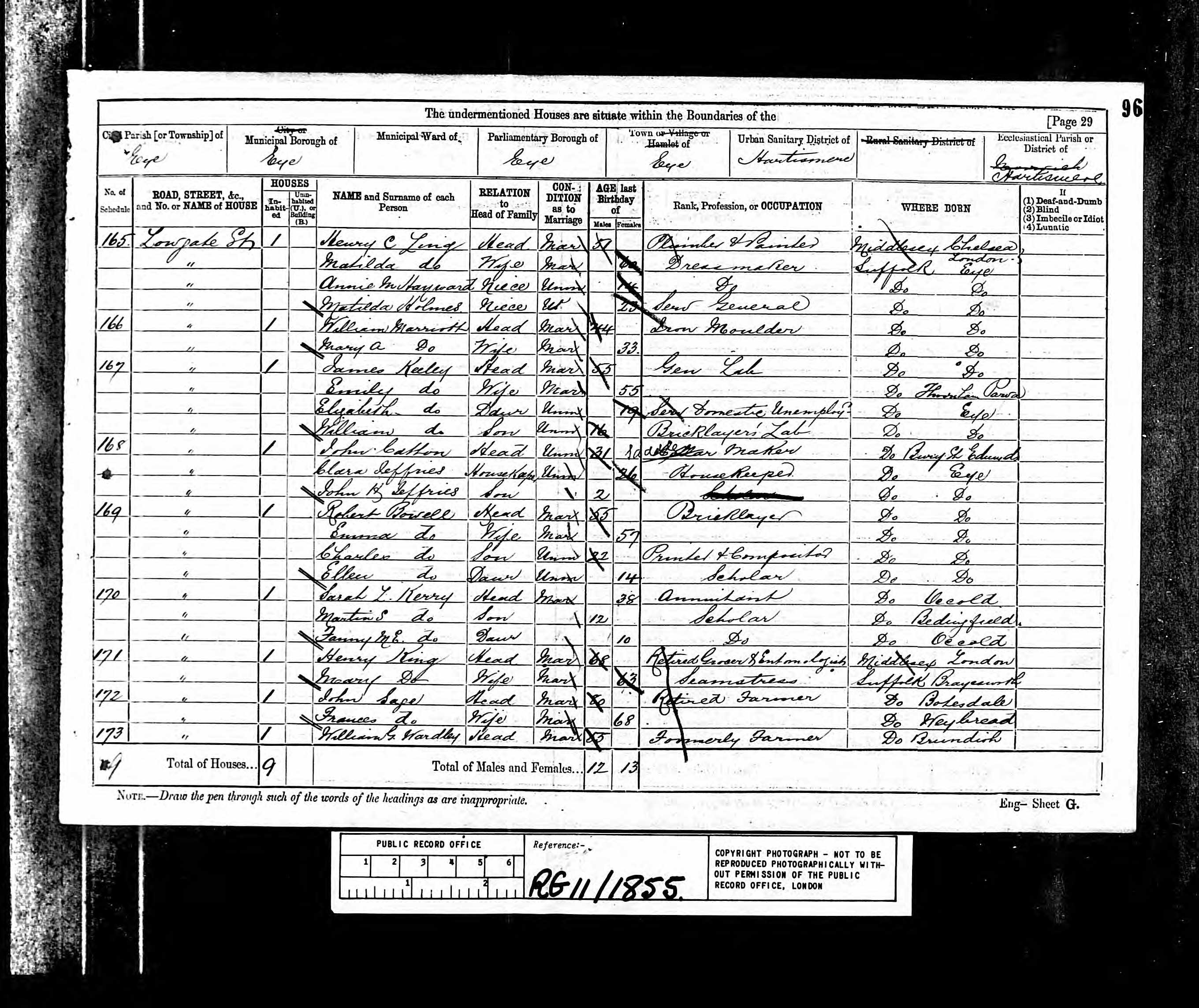 1881 England and Wales Census; Class RG11, Piece 1855, Folio 96, Page 29, Schedule 172.