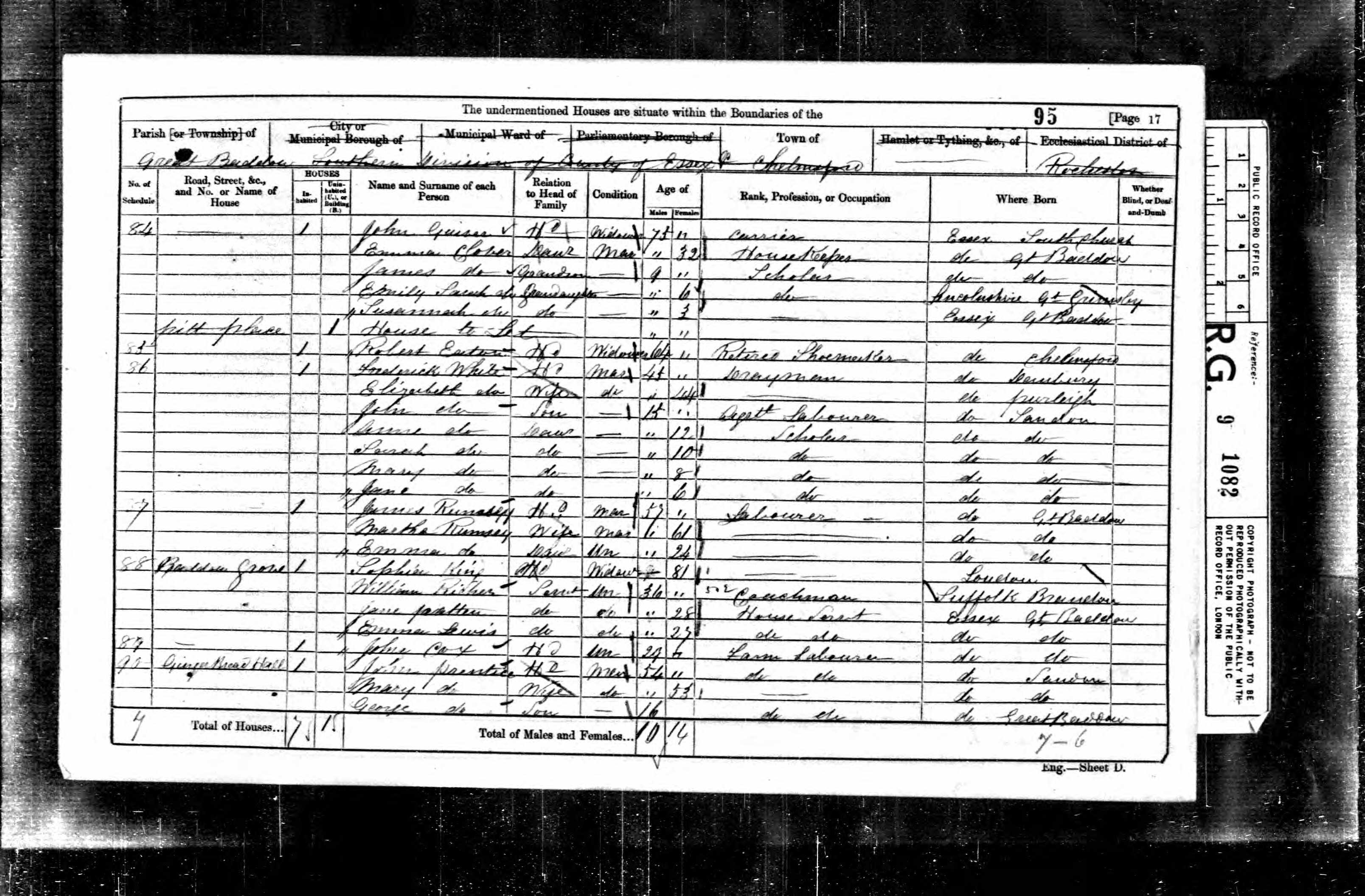 - was recorded in the census on 7 Apr, 1861 in Great Baddow, Essex, England