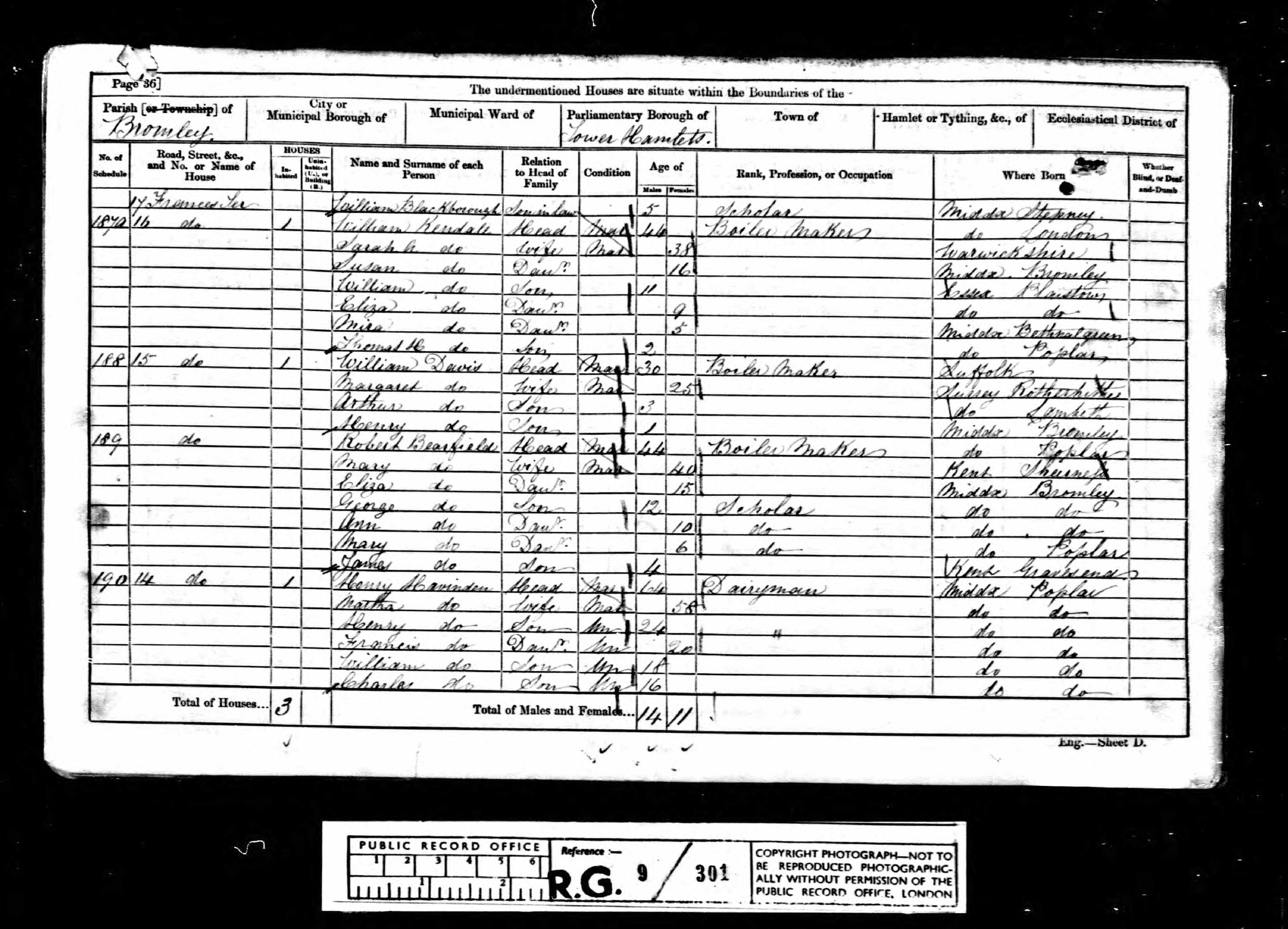 - was recorded in the census on 7 Apr, 1861 at Francis Terrace, Bromley, Middlesex, England