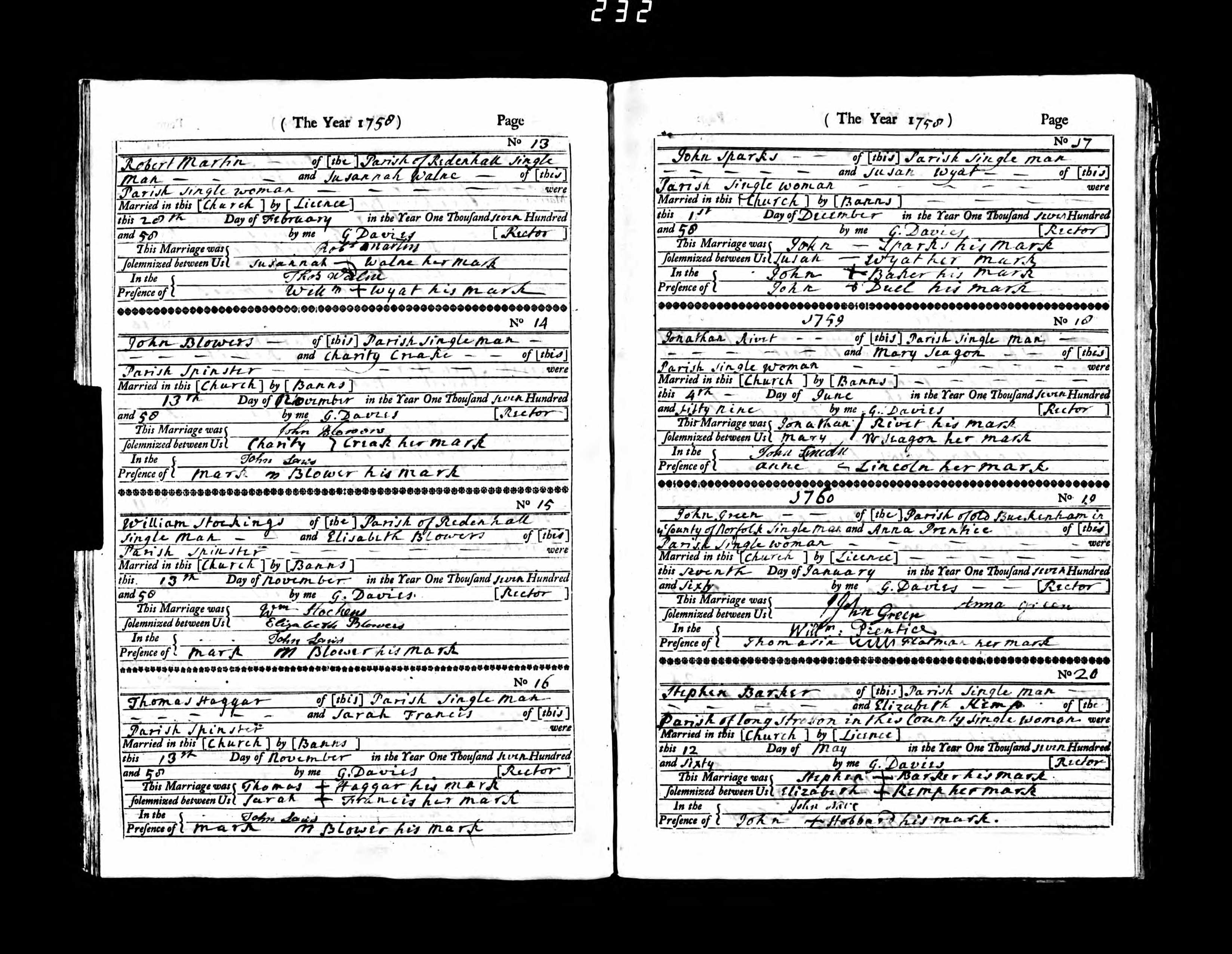 - Robert Martin★ was resident on 28 Feb, 1759 in Redenhall with Harleston, Norfolk, England