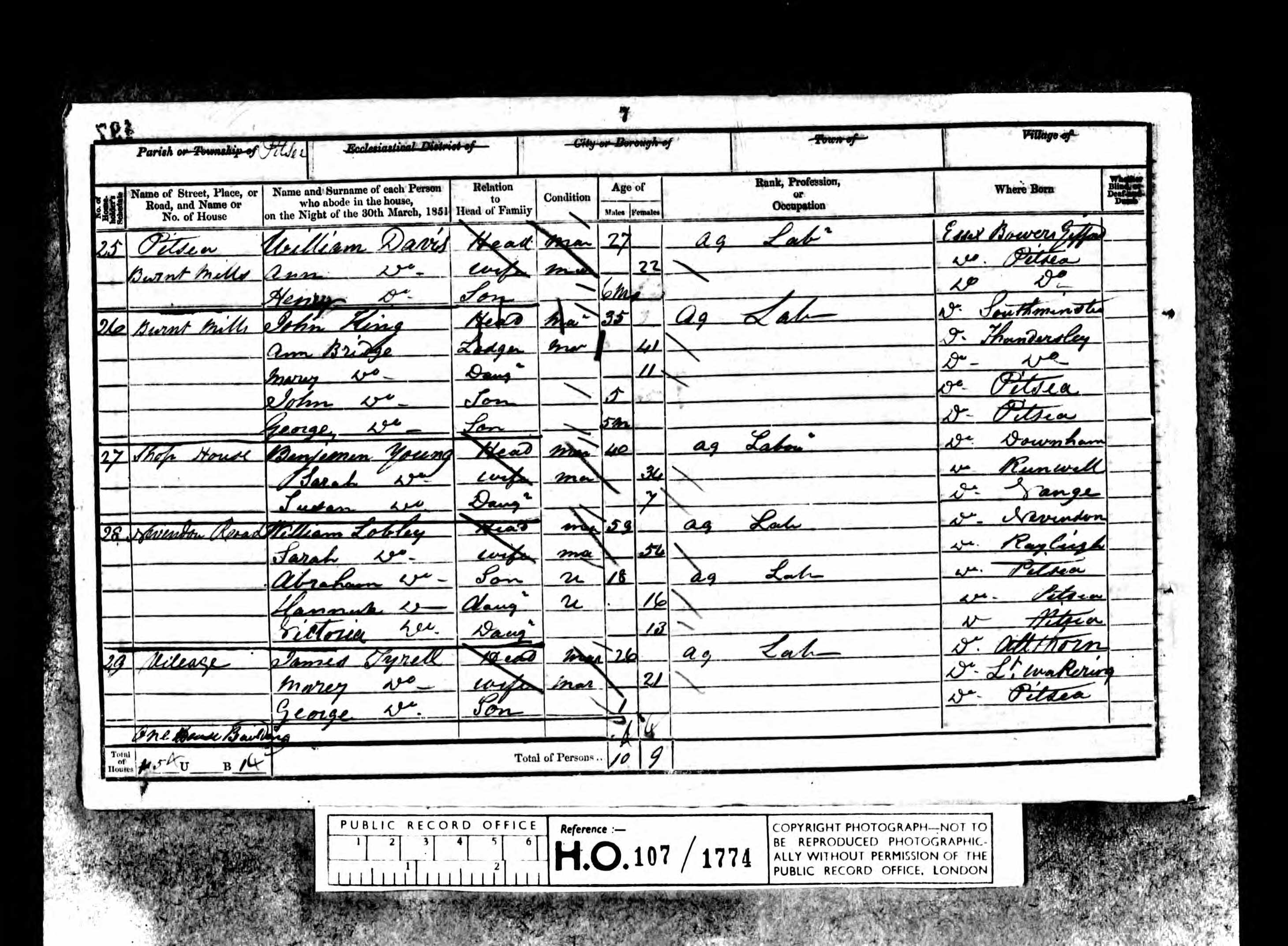 - Benjamin Young★ had occupation recorded as agricultural labourer on 30 Mar, 1851
