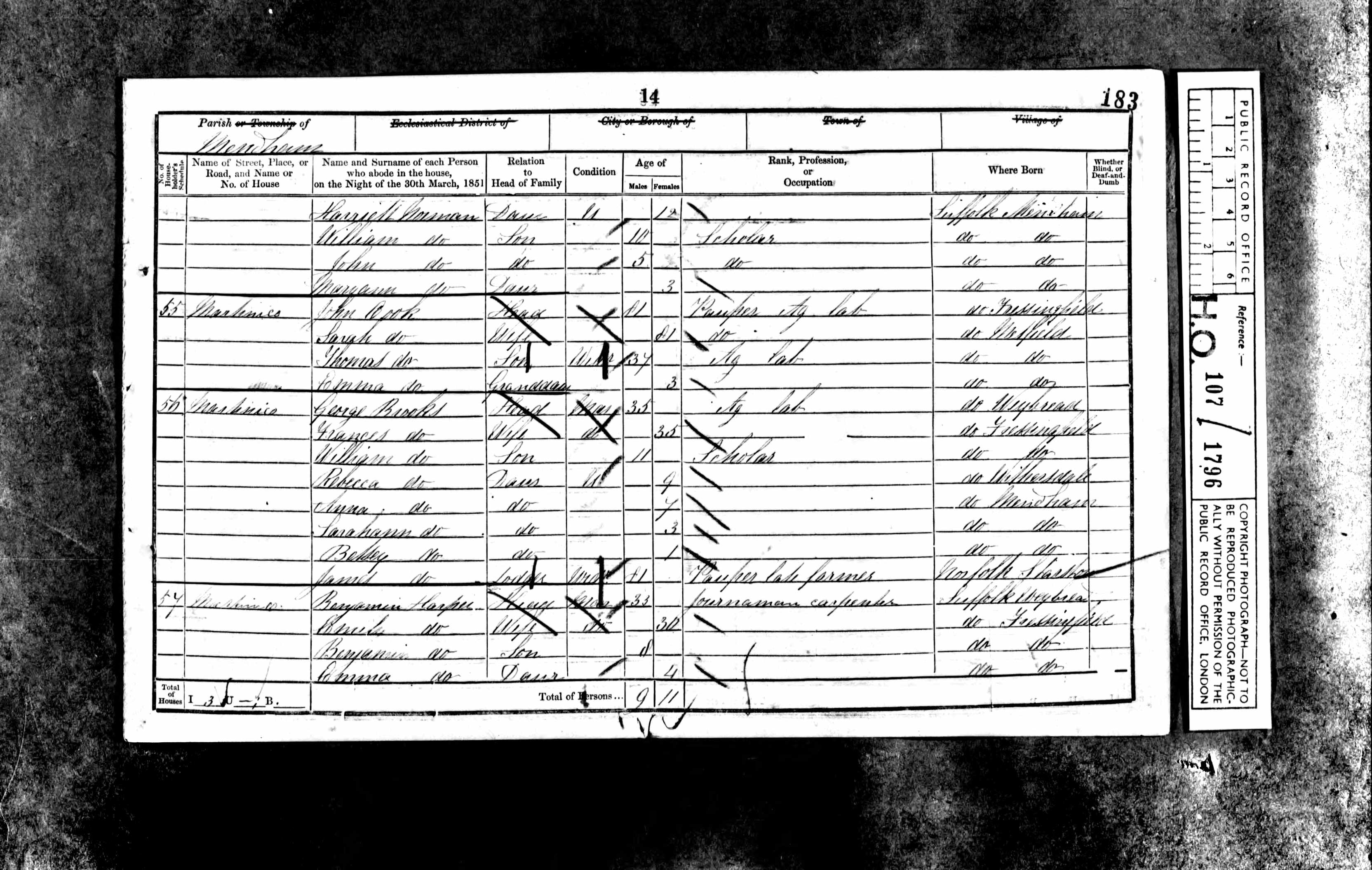 1851 England and Wales Census; Class HO107, Piece 1796, Folio 183, Page 14, Schedule 56.