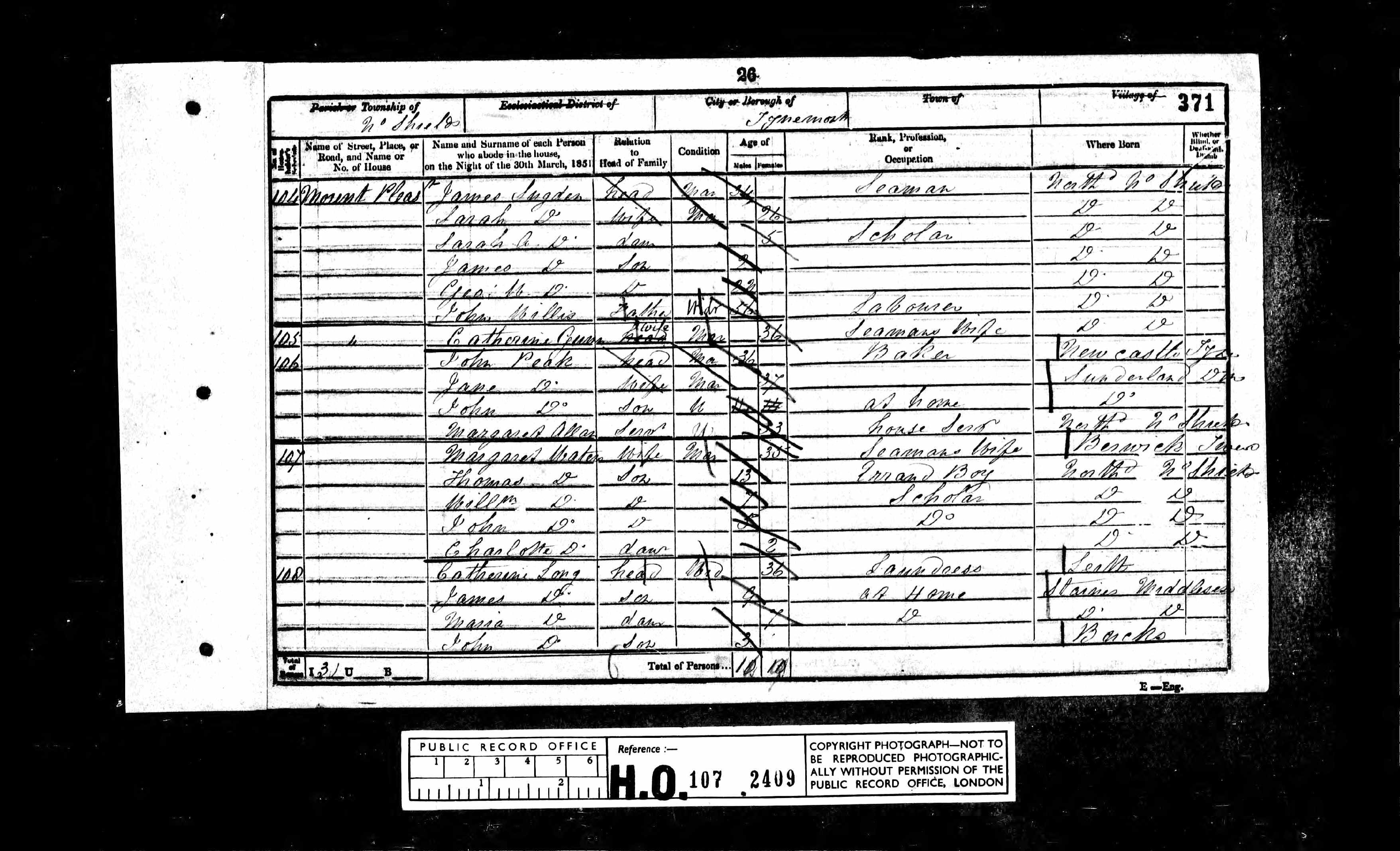 1851 England and Wales Census; Class HO107, Piece 1409, Folio 371, Page 26, Schedule 106.