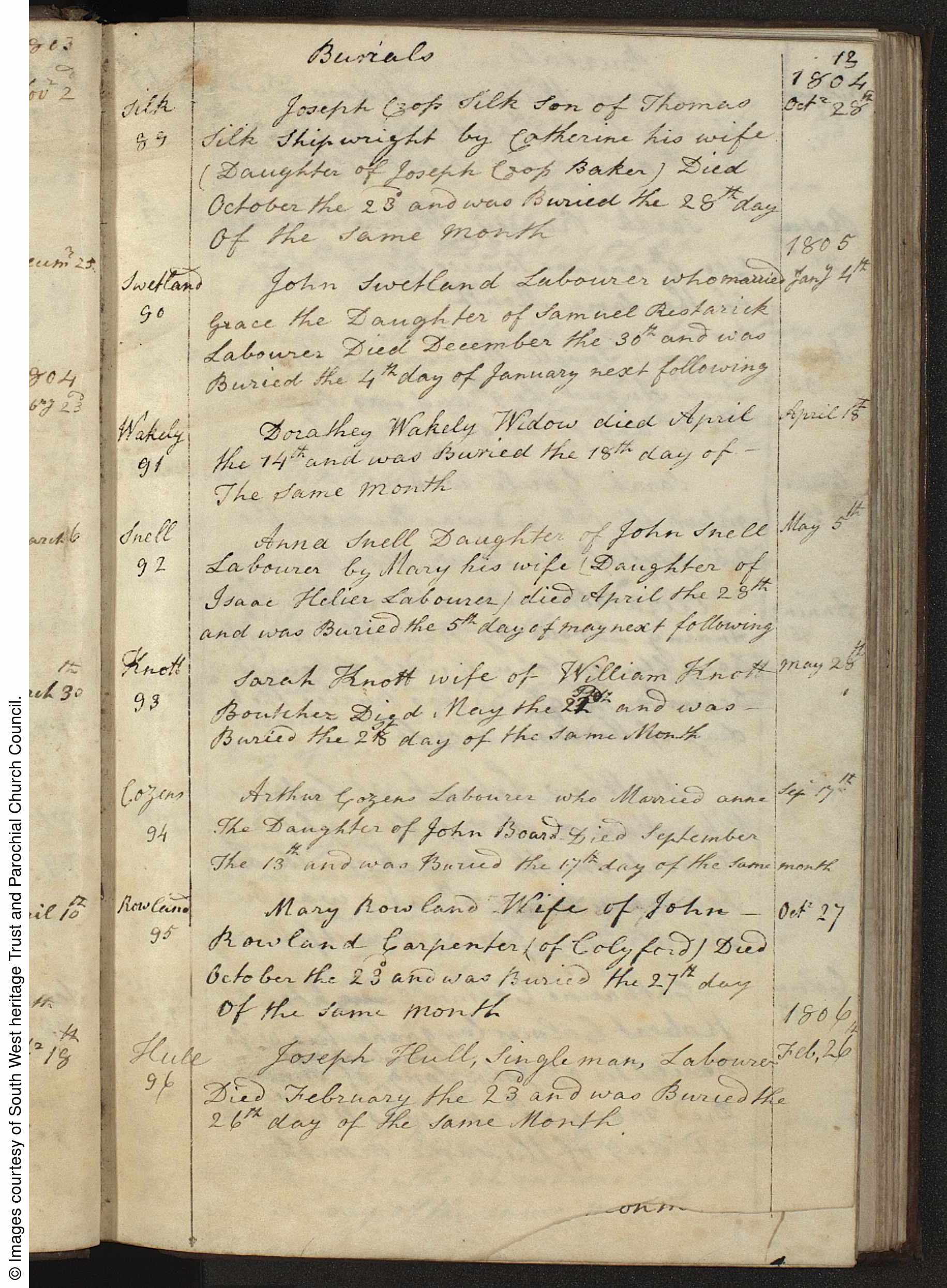 - John Swetland died on 30 Dec, 1804 in Axmouth, Devon, England