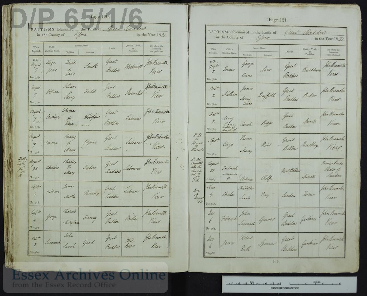 Cited from Parish Registers of St. Mary the Virgin, Great Baddow, Essex (Church of England)