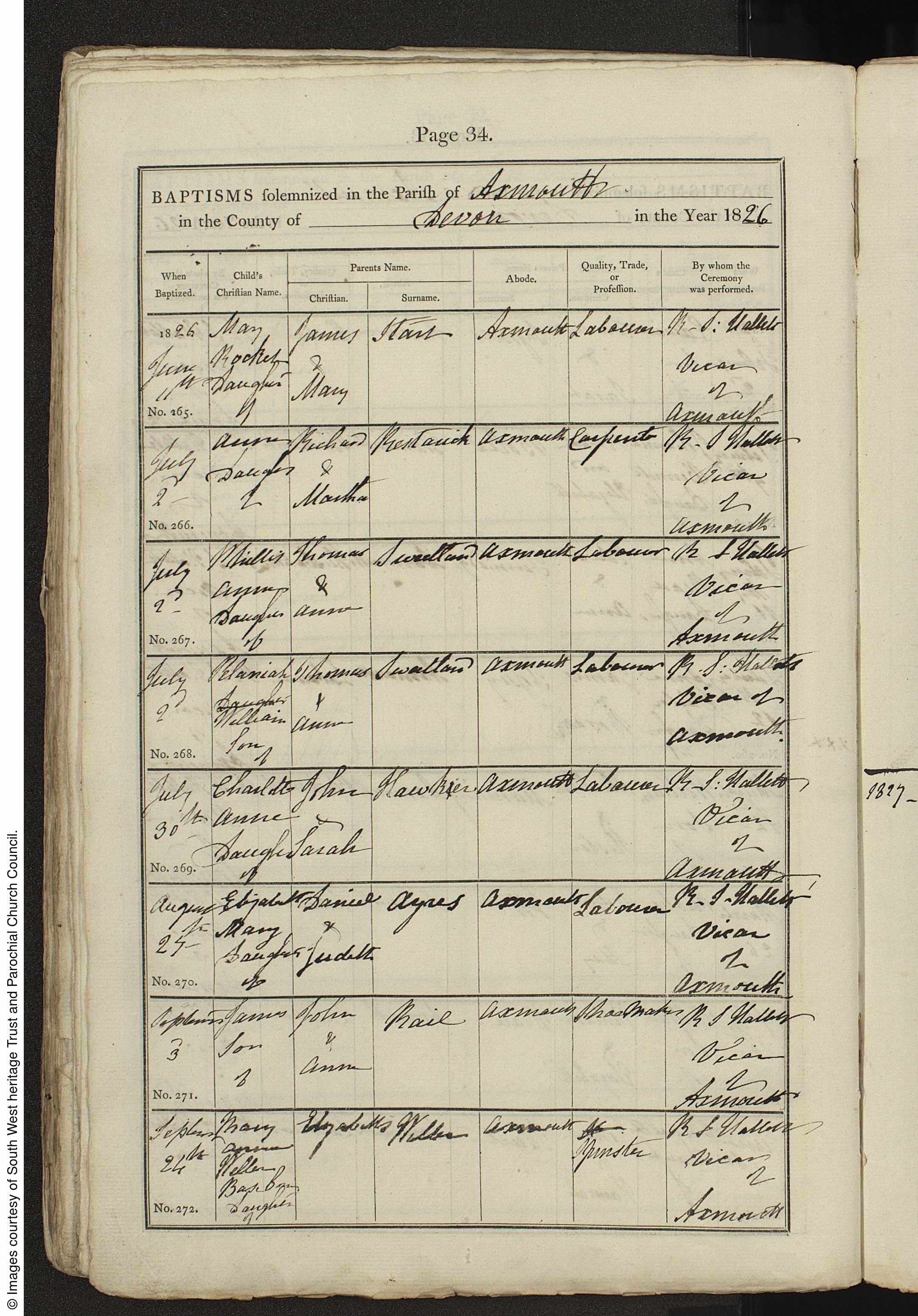 Cited from Parish Registers of St. Michael, Axmouth, Devon (Church of England)